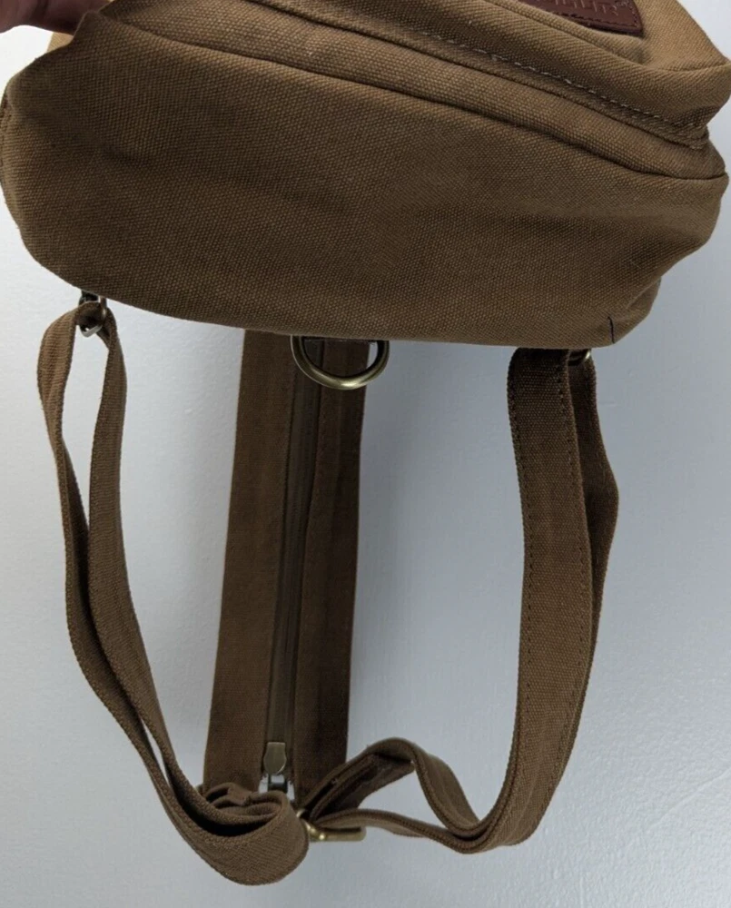 This compact sling bag is perfect for quick outings—lightweight, stylish, and super functional. The brown canvas gives it a rugged yet chic look, and the multiple pockets keep essentials organized. Great condition, just as described! Ideal for outdoor adventures or casual errands. Love the versatility!