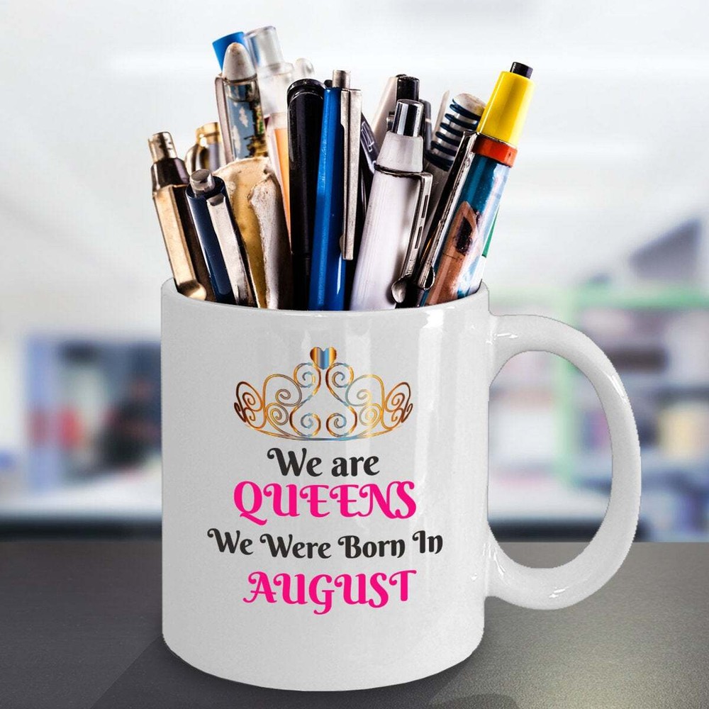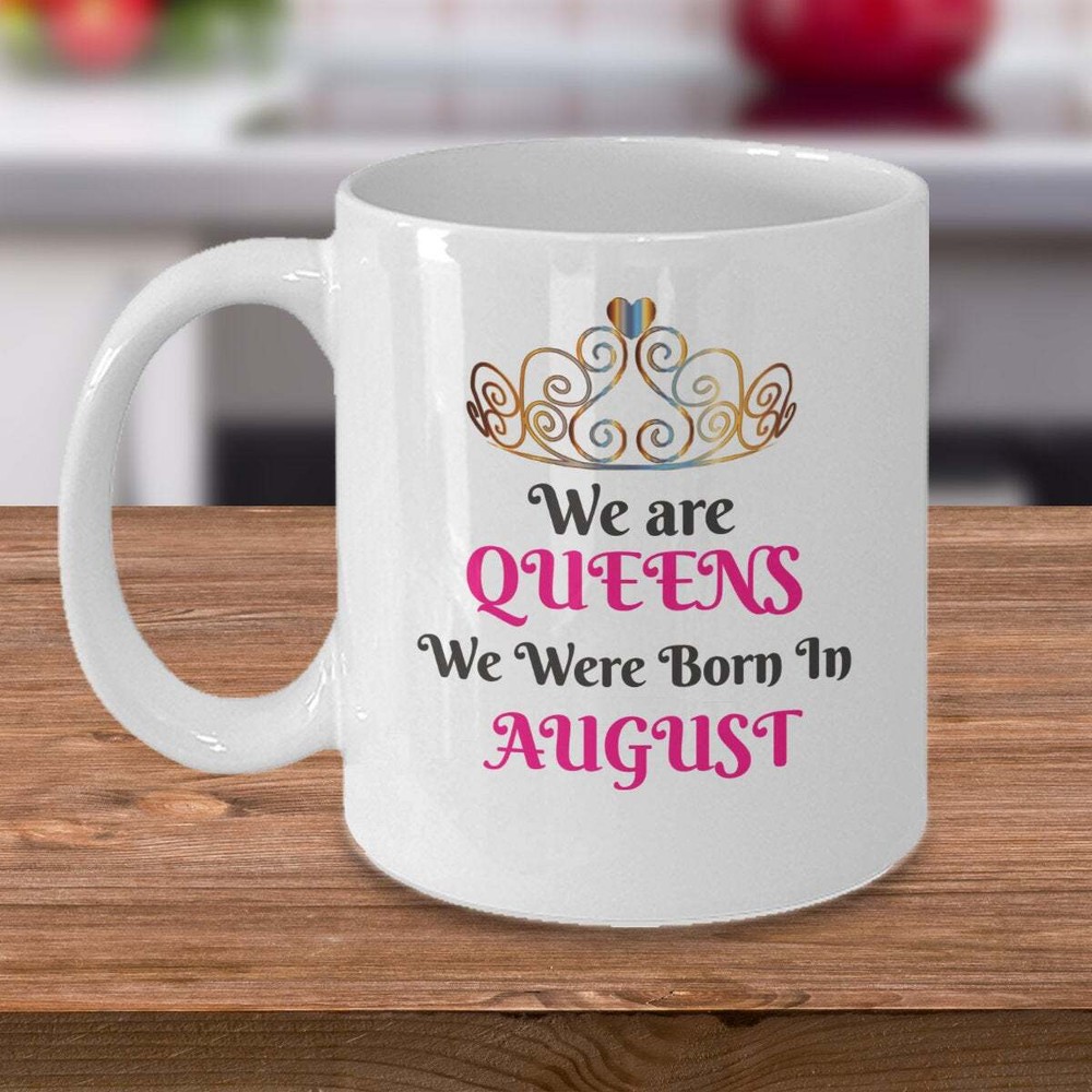 We Are Queens We Were Born In August Mug Woman August Birthday Gift Queen Mug Product Details.. This high quality 11oz. ceramic white mug has a premium hard coat that provides crisp and vibrant color reproduction sure to last for years. Perfect for all hot & cold beverages. The highest quality printing possible is used. It will never fade no matter how many times you wash it. Material: 100% Ceramic. Print both sides. Dishwasher and Microwave Safe. High Gloss + Premium White Finish. Printed in the U.S.A. Personalized & Custom. We support personalized and custom mug to add custom, when placing an order, you can add notes to the "order note" in shipping address section. Also you can contact us directly via message. Shipping Info. Ready to ship in 1 to 2 business days, All products are made-to-order and proudly printed in the United States. Shipped by USPS and DHL, You will receive your order in 5-7 days. Replace & Refund. All products are defective during shipping broken, chipped will be replaced free of charge. You are not satisfied with the product, we will refund 100% money to you. If any other issues arise, please do not hesitate to message, we would be more than happy to assist you.
