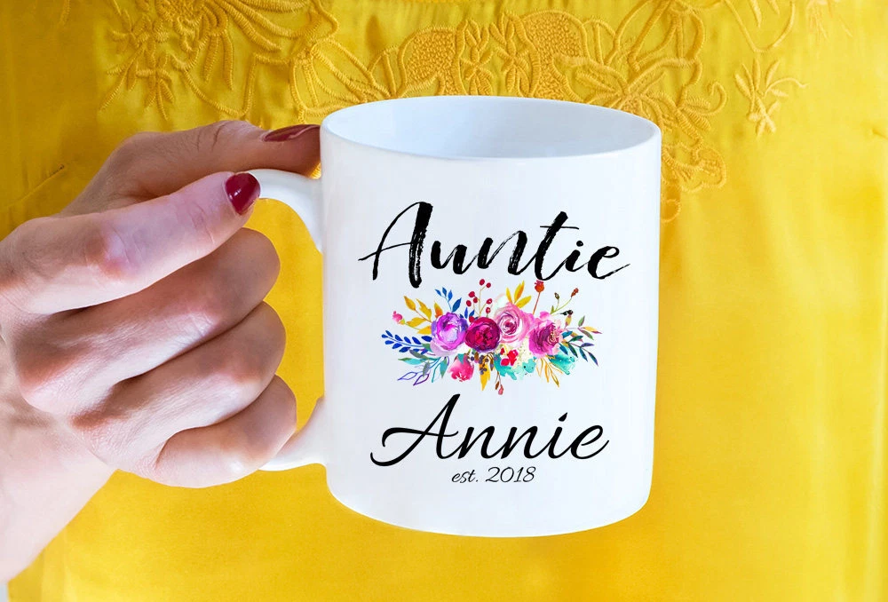 Auntie Mug Aunt Mug Aunt Gift Coffee Mug Gift For Sister Aunt To Be New Aunt Product Details.. This high quality 11oz. ceramic white mug has a premium hard coat that provides crisp and vibrant color reproduction sure to last for years. Perfect for all hot & cold beverages. The highest quality printing possible is used. It will never fade no matter how many times you wash it. Material: 100% Ceramic. Print both sides. Dishwasher and Microwave Safe. High Gloss + Premium White Finish. Printed in the U.S.A. Personalized & Custom. We support personalized and custom mug to add custom, when placing an order, you can add notes to the "order note" in shipping address section. Also you can contact us directly via message. Shipping Info. Ready to ship in 1 to 2 business days, All products are made-to-order and proudly printed in the United States. Shipped by USPS and DHL, You will receive your order in 5-7 days. Replace & Refund. All products are defective during shipping broken, chipped will be replaced free of charge. You are not satisfied with the product, we will refund 100% money to you. If any other issues arise, please do not hesitate to message, we would be more than happy to assist you.