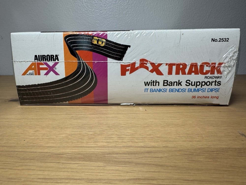 AURORA AFX, VINTAGE 1979 SPEED-LOK, 36" FLEX TRACK W/BANK SUPPORTS. New Open Box