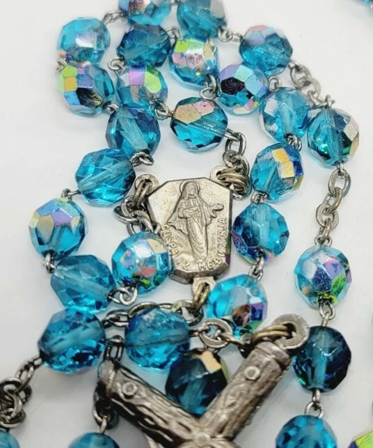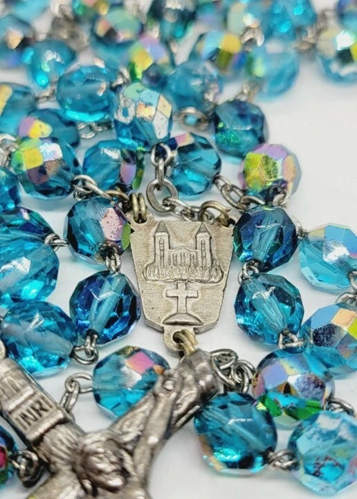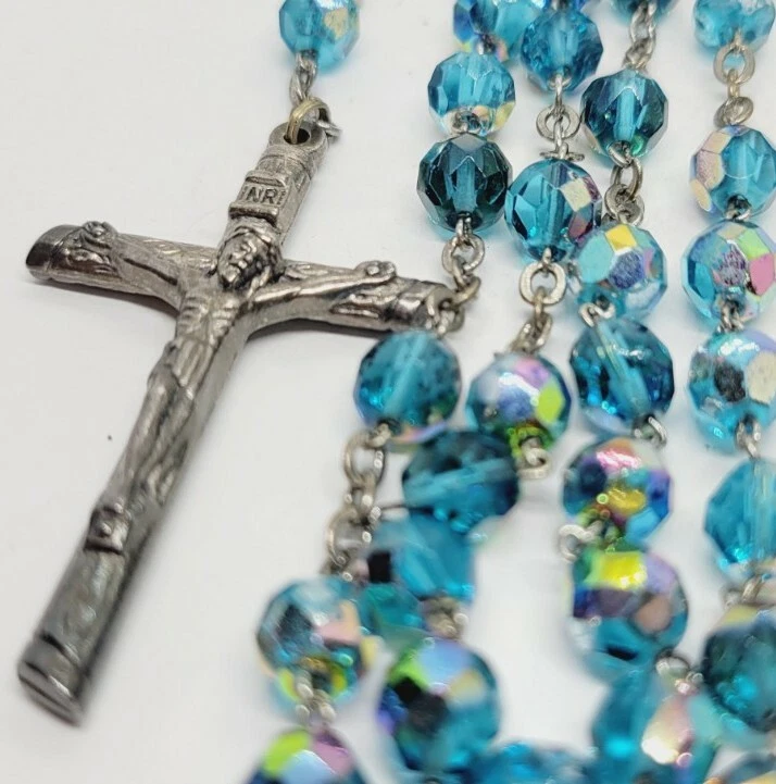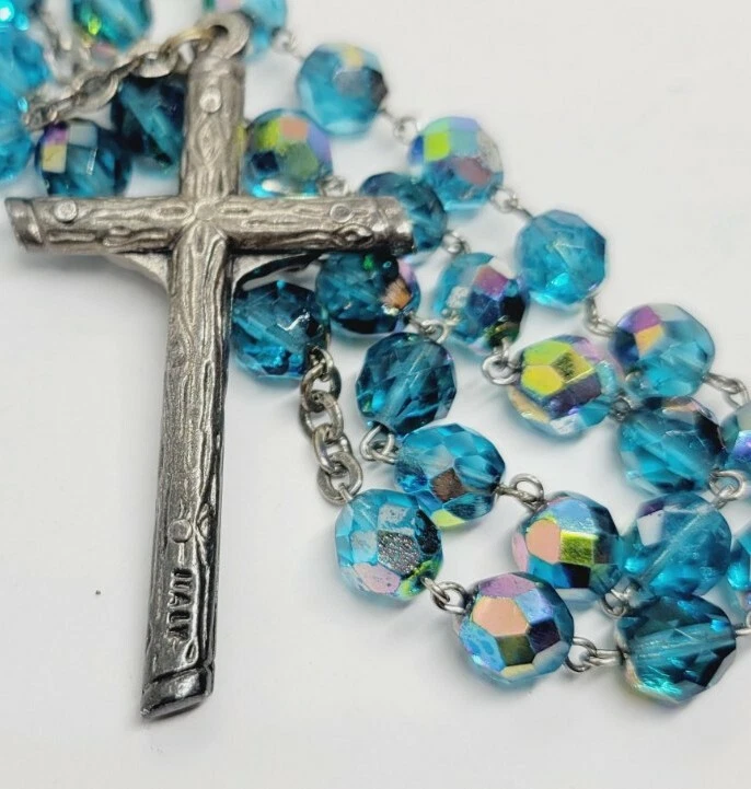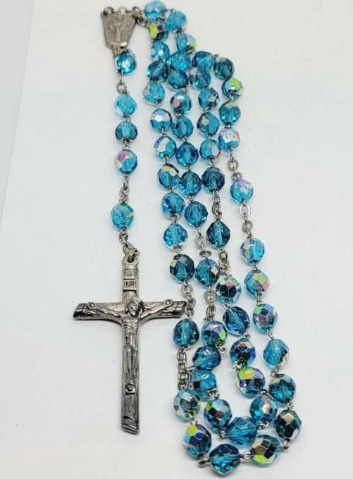 Aurora Blue Crystal Beaded Rosary INRI 22" Crucifix † ITALY GOSPA 12 MEDUCORJA