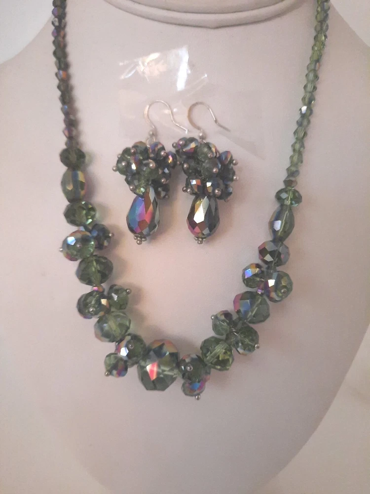 This vintage pink watermelon aurora borealis faceted crystal beaded necklace and earring set is a must-have for any fashion-forward woman. The Lobster closure ensures that the necklace stays securely around your neck, while the 16-inch necklace length is perfect for a comfortable fit. The Watermelon Borealis color of both the main stone and the metal of the necklace and earrings is absolutely stunning, making this set a true statement piece. The crystal beads are intricately crafted and the set is made of 925 silver, giving it a timeless and elegant feel. Whether you're dressing up for a night out or adding some glamour to your everyday look, this necklace and earring set is the perfect accessory.