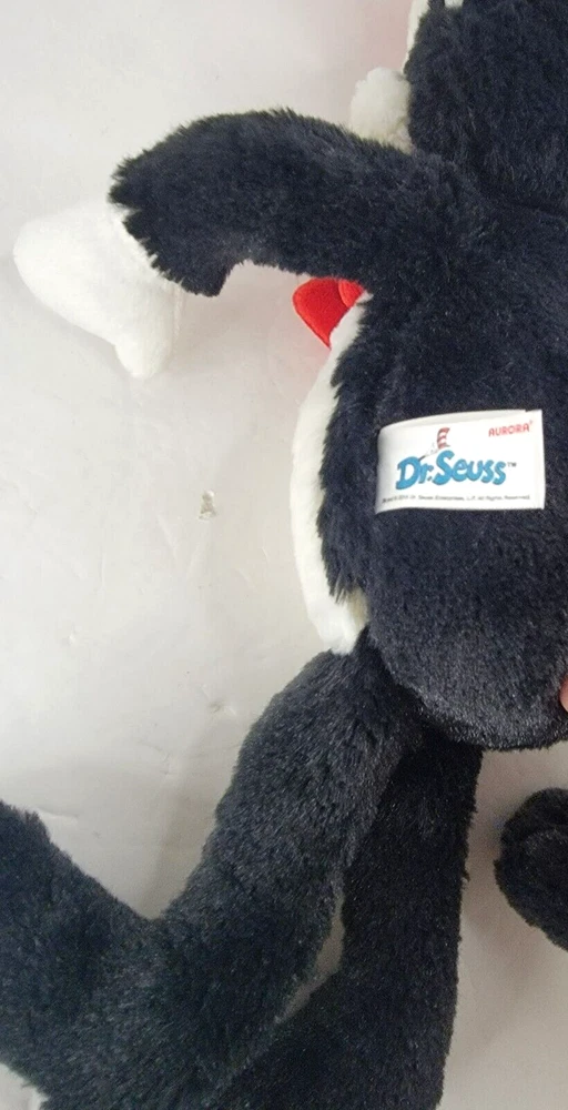 Bring home the lovable and mischievous cat from the beloved Dr. Seuss story with this Aurora soft floppy plush. Standing at 17 inches tall, this medium-sized cat is perfect for snuggling up with. The black, white, and red color scheme is instantly recognizable, and the embroidered features make him look just like the character from the classic children's book. This 2018 edition of the Cat in the Hat plush is a must-have for any Dr. Seuss fan or collector. With its high-quality construction and attention to detail, it's sure to be a cherished addition to your stuffed animal collection.