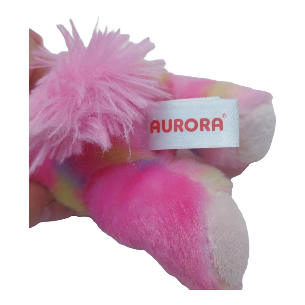 Aurora Pink multi-colored Plush Stuffed Animal 8" laying down