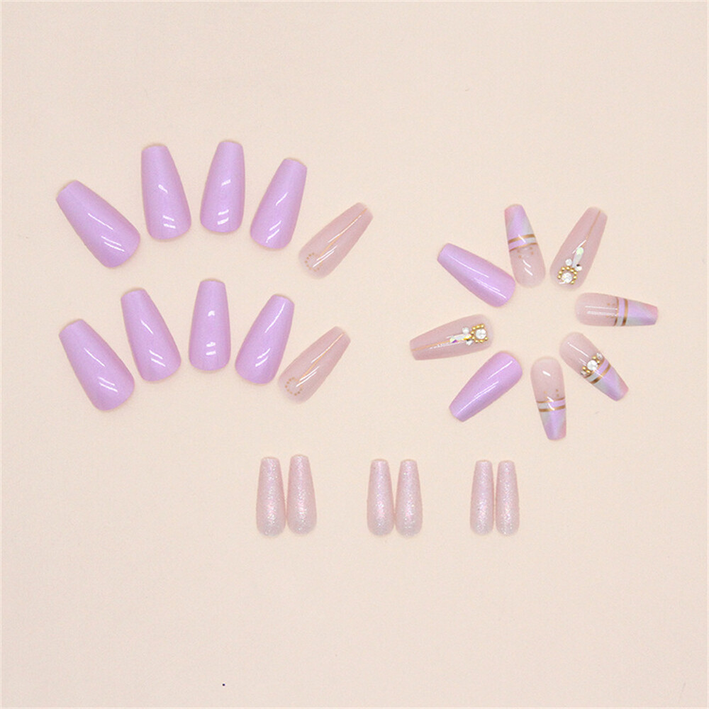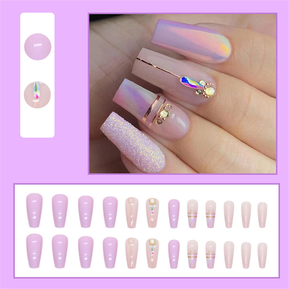$ 2.11Pink Glitter Coffin Press On Nails 48pcs Long False Nails for Toe and Finger