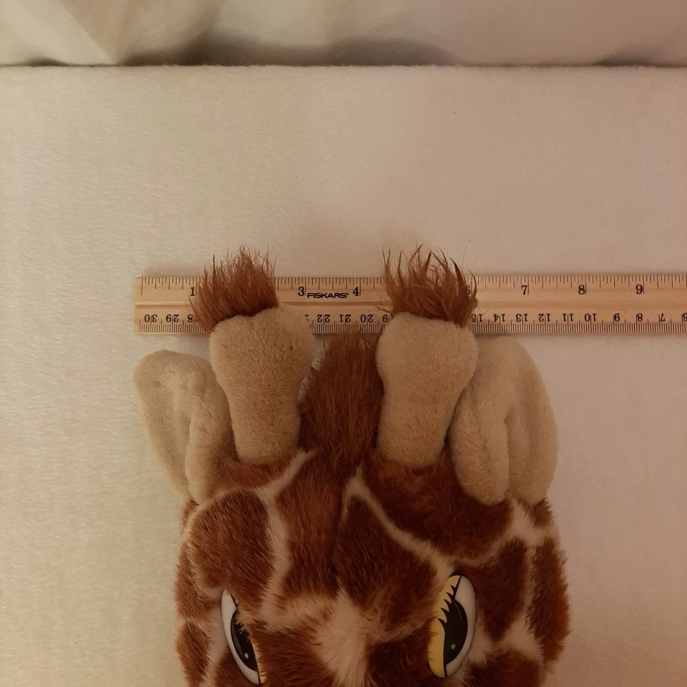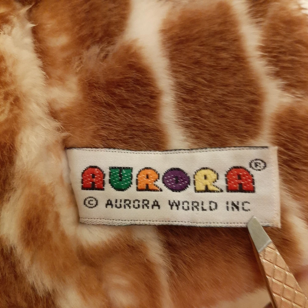 Aurora World Giraffe Head Plush Hand Puppet Jungle Zoo Animal 10 Inch DAMAGED In good pre-owned condition may show signs of wear from use/handling/storage/display. Please view all pics for condition/details/flaws/issues. SOLD AS IS In okay pre-owned condition is missing one nose piece please see photo 1 as well as something hard is on some of it leaving cleaning to buyer please see photo 5,8, & 9. otherwise in good condition.