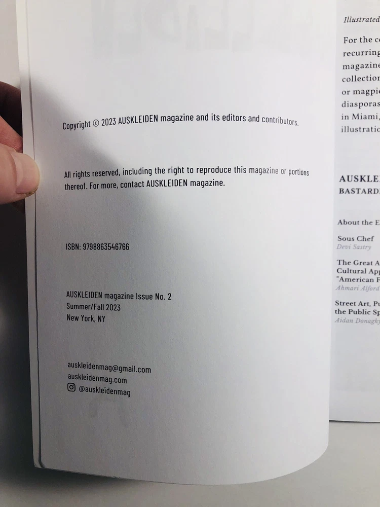 Auskleiden Magazine No 2 Hazel Ferguson Essays Art Film Fashion Culture. 1. WE DO NOT USE STOCK PHOTOS. These are actual photos of the magazine that you will receive. 2. There is normal spine, cover, and page wear to this magazine per the photos. 3. We ship our magazines with care, the same way we would like to receive them. - this magazine will be in a bag, bubble wrapped, secured between 2 pieces of cardboard, and shipped in a bubble mailer 4. Please see the photos for condition and message me with any questions or if you would like to see additional photos.