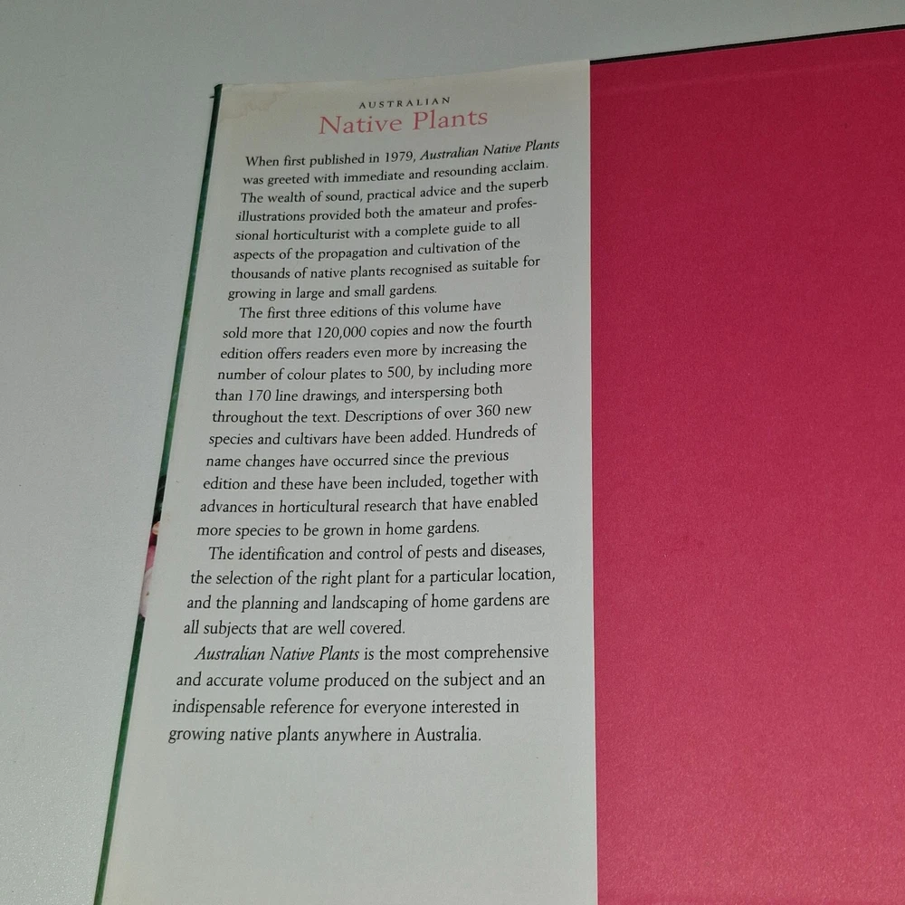 Australian Native Plants by John W. Wrigley and Murray Fagg Propagation, cultivation and use in landscaping Fully revised and updated Fourth Edition Free Shipping Australia Wide Sent with tracking to ensure safe delivery Worldwide Shipping Available (please message for an accurate quote - I am happy to combine shipping to lower the expense) Returns Accepted 100% Australian Owned and Operated All Books in Stock Quality Books at Great Prices Please message if you have any queries I am happy to help When you purchase a book from Love Finds a Home you are helping an Aussie Mum care for her family and I am very grateful. #OC2 1/10/24