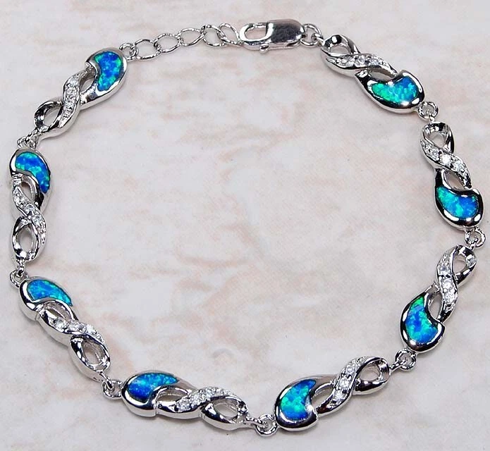 Chain Type: Not Applicable Main Stone: Opal Country/Region of Manufacture: Thailand Country of Origin: Thailand Cut Grade: Excellent Color: White Brand: Handmade Material: Gemstone Main Stone Color: Blue Setting Style: Prong Metal Purity: 925 Style: Tennis Features: Nickel-Free Diamond Color Grade: Not Applicable Colored Diamond Intensity: Not Applicable Base Metal: Sterling Silver Gemstone Clarity Grade: Eye Clean Diamond Clarity Grade: Not Applicable Item Length: 6 in Main Stone Treatment: Not Enhanced Occasion: Anniversary, Birthday, Engagement, Confirmation/Communion Secondary Stone: Topaz Number of Diamonds: Not Applicable Number of Gemstones: Not Applicable Theme: Fashion & Costumes Type: Bracelet Metal: Sterling Silver