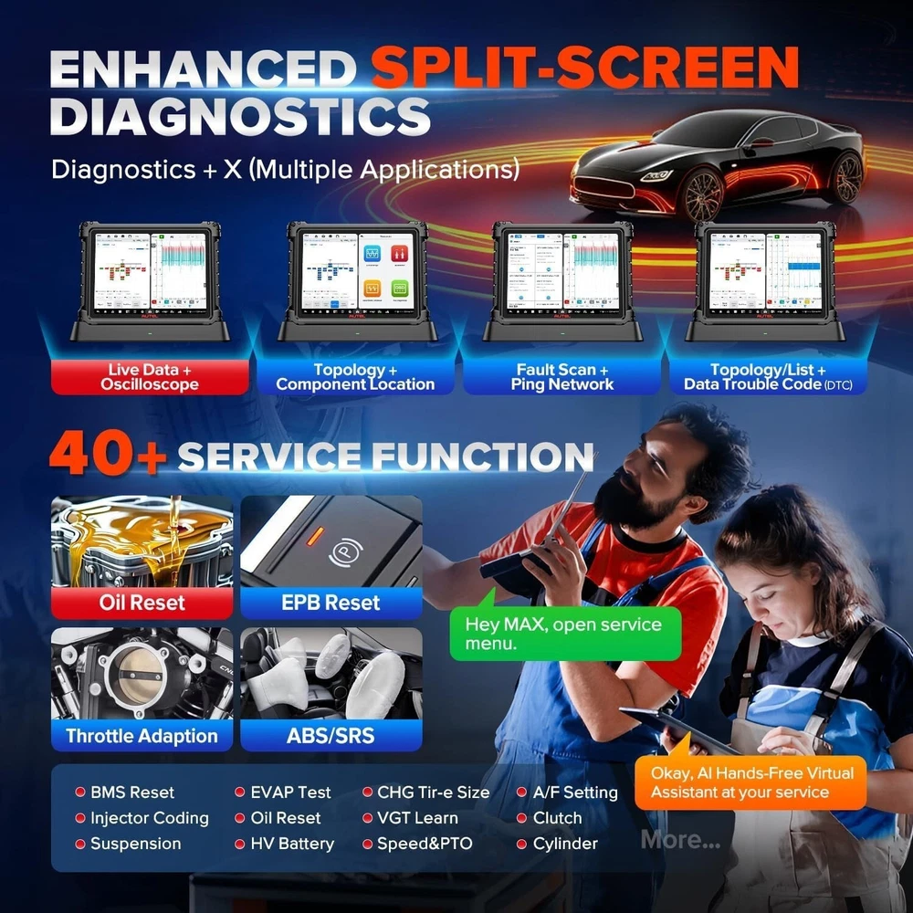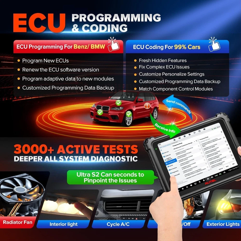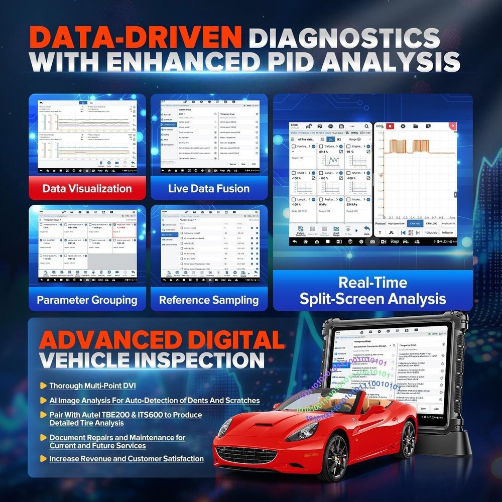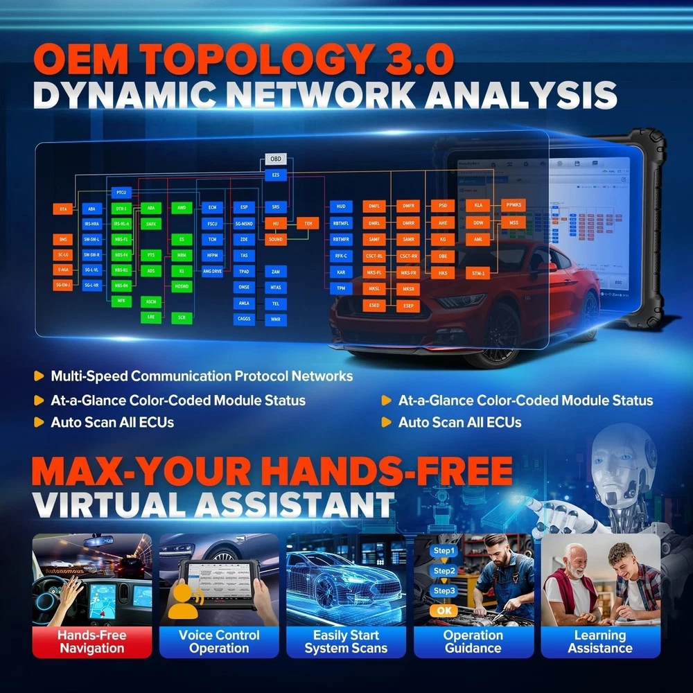 Autel MaxiSYS Ultra S2 6in1 VCMI2 AI Programmer 4-Channel Oscilloscope Scanner motor_diag is an eBay certified Autel authorized store, we sell Autel genuine scanners, provide official after-sales service, repairs, free returns, Autel technical support (lifetime) and more. Click here to send a message to the seller and get the latest discounts! DESCRIPTION MaxiSYS Ultra S2 An intelligent diagnostic solution with voice-controlled AI and the most advanced VCMI module – all in one device. The Autel MaxiSys Ultra S2 is AUTEL’s most advanced diagnostic tool, designed for professionals who seek not only functionality but also next-generation convenience. This model stands out with its integrated artificial intelligence that enables voice control (“Hey, Max”), intelligent ECU topology, automatic updates, and universal service management. It’s a tool that not only performs diagnostics but also actively assists at every step. 6-IN-1 VCMI2 ENHANCED VEHICLE COMMUNICATION & MEASUREMENT DEVICE Advanced VCI/J2534 pass-thru programmer, improved 4-channel oscilloscope, Multimeter, Waveform generator, CAN-Bus Tester, and standalone Remote Expert device, all in a lighter and more compact chassis. UPGRADED HARDWARE • Larger 13.7” Anti-Glare Screen • Increased Storage (512GB) • Supports Wi-Fi 6 for High-Speed, Low-Latency Data Transmission • Enhanced Docking Station with Tablet “Fast Charge” • Faster 2.7G 8-Core Processor DATA-DRIVEN DIAGNOSTICS WITH ENHANCED PID ANALYSIS Data Visualization : Enhanced graphing capability to visualize multiple parameters to identify the relationship between PIDs and pinpoint system anomalies. Live Data Fusion : Record and compare value changes across multiple systems Reference Sampling : Record, store, and review selected PIDs for pre- and post-repair comparison that will flag min, max, and average. Parameter Grouping : Multi-PID selection for analyzing related parameters simultaneously. Ideal for engine fault and performance and emissions troubleshooting. ENHANCED SPLIT-SCREEN DIAGNOSTICS DIAGNOSTICS + X (MULTIPLE APPLICATIONS) • Live Data + Oscilloscope • Topology + Component Location • Fault Scan + Ping Network • Topology/List + Data Trouble Code (DTC) MEET MAX, YOUR HANDS-FREE VIRTUAL ASSISTANT: “HEY MAX, OPEN SERVICE MENU.” MAX enables hands-free navigation of the Ultra S2 interface and provides verbal command functionality for various tasks and functions. Effortlessly initiate a system scan, access maintenance tasks, or execute active tests. TOPOLOGY 3.0- DYNAMIC NETWORK ANALYSIS OE-Style System Analysis of Multi-Speed Communication Protocol Networks Active Module and Network Analysis: Locate and Directly Ping ECUs to Test Signal Quality and Network Integrity At-a-Glance Color-Coded Module Status ENHANCED OSCILLOSCOPE FUNCTIONALITY INTEGRATED & IMPROVED Activate Scope directly from Live Data Analysis New Comprehensive Electrical Vehicle Tests: AC and DC Charging, High Voltage Component, Interlock Loop Signal, Power-On Control, Resolver Sensor, and Thermal Management System Added Parasitic Current Draw, Swing Tests ADVANCED DIGITAL VEHICLE INSPECTION THOROUGH MULTI-POINT DVI AI-powered image analysis for auto-detection of dents and scratches Pair with Autel TBE200 Tire Tread Examiner and ITS600 TPMS tool to produce detailed tire analysis Vehicle status report. Track maintenance. Maximize revenue and customer satisfaction. FEATURES AND FUNCTIONS The 6 New key features AI VOICE ASSISTANT Interactive Workflow control DIGITAL VEHICLE INSPECTION All-Around Vehicle Inspection NEW TOPOLOGY ECU Location Guide + PING Network Function + Terminal Resistance Detection GRAPHICAL DISGNOSTICS System Diagram + Component Layout ENHANCED LIVE DATA Sharing as reference + Multi-Grid Display ENHANCED AUTEL CLOUD PC-based cloud platform+ Report, Live data, oscilloscope recordings management WHAT TO ADDRESS? The hands are unable to operate the screen during repairs Difficulty to find desired functions during repair Difficulty to look up the meanings of terms and abbreviations during repair WHAT CAN THE AI VOICE ASSISTANT ON ULTRA S2 OFFER? Autel's self-developed high-accuracy automotive diagnostic voice interaction model 4-microphone noise-reduction technology with high voice pickup quality Find and control specific functions through voice, freeing up the technician's hands. Query professional term explanations via voice control, such as ECU abbreviations, Live data meanings, reference values, etc. FIVE TYPES OF INTERACTIVE VOICE COMMANDS: Diagnostic workflow implementation, Function search, Abbreviation meaning inquiry, System settings, Open app Diagnostic workflow implementation Function search Digital Vehicle Inspection WHAT TO ADDRESS? The Absence of a unified report to track the entire process of the vehicle from entry to delivery The reliance on visual observation and phone photos to record the vehicle's status by car reception WHAT CAN THE DIGITAL VEHICLE INSPECTION ON ULTRA S2 OFFER? Digitized vehicle inspection process, eliminating the need for manual recording of the vehicle's status upon entry All-Around Vehicle Inspection report includes items from appearance, interior, chassis to components AI-based detection of 6 major appearance defects (Scratch, Scrape,Dent,Crack,Winkles,Lack) Compatible with TBE200EU and ITS600 for rapid tire checking Complete the workflow from vehicle reception to delivery, along with the Pre-scan and Post-scan reports in the diagnostic function Realization historical vehicle condition comparison, visually displaying changes and illustrating the repair value of the shop. THE RANGE OF INSPECTION The detection items that DVI can record include: Vehicle Appearance Brakes and tires Internal and external function Chassis Engine compartment Battery system The AI-based Vehicle Appearance can detect 6 defects: Scratch Scrape Dent Crack Winkles Lack WHAT TO ADDRESS? The absence of the actual ECU location information. The lack of d