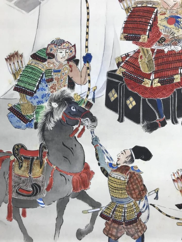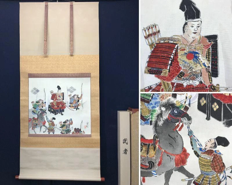 Auth Japanese Samurai Battle Scene Kakejiku (Hanging Scroll) Hand-Painted Silk Description Shipping from JAPAN. Condition: Used Takebayashi Ai Details: Born in Mie Prefecture in 1949 (Showa 24), studied Japanese painting under the Maruyama Shijo School, held numerous solo exhibitions and received awards at various exhibitions. Specializes in flowers and birds, resides in Kyoto Prefecture. 【Condition of the Work】 The main paper is a hand-painted silk work. The main paper has some dirt and stains. The mounting is generally in good condition. There are numerous glue stains on the back. Comes with a paulownia wood box (double box). Scroll size: length 57 inches (145 cm) × width 28 inches (72 cm). "For fragile items, I will ensure careful packaging and ship them with insurance for added protection. In the unlikely event that an item arrives broken, I will issue a full refund. Kindly take photos of the broken outer box and the broken item upon opening, as these will be required for processing the claim. Rest assured, I will address the matter with the utmost sincerity. Thank you for your understanding." Returns We accept returns within 30 days of delivery, but please note that the customer is responsible for the cost of return shipping. Our return policy guarantees 100% satisfaction. If you receive an item that is significantly different from its description on our website, please contact us by email to request a refund. In such cases, you will need to return the item to us before we can process your refund. International Buyers - Please Note: Please note that import duties, taxes, and other charges are not included in the item price or shipping cost. These charges are the buyer's responsibility. We kindly advise you to check with your country's customs office to determine what these additional costs will be before placing a bid or making a purchase. Please be aware that such charges are typically collected by the delivering freight (shipping) company or when you pick up the item. Therefore, please do not mistake them for additional shipping charges. We comply with all applicable US and international laws and regulations regarding the declared value of merchandise. Please note that we cannot mark items as "gifts" or declare a lower value than their actual price. Such practices are prohibited by law, and we are committed to adhering to ethical and legal standards. If you cancel your order, we reserve the right to charge a cancellation fee. If there is an additional charge for shipping to your remote address, we will inform you and charge accordingly. We appreciate your understanding and cooperation, and we are happy to assist you with any questions or concerns you may have about international shipping and customs regulations. Thank you for your interest in our products and services.