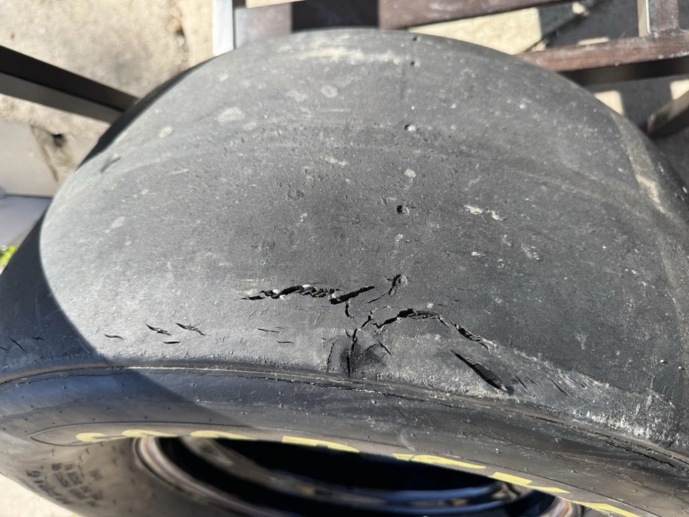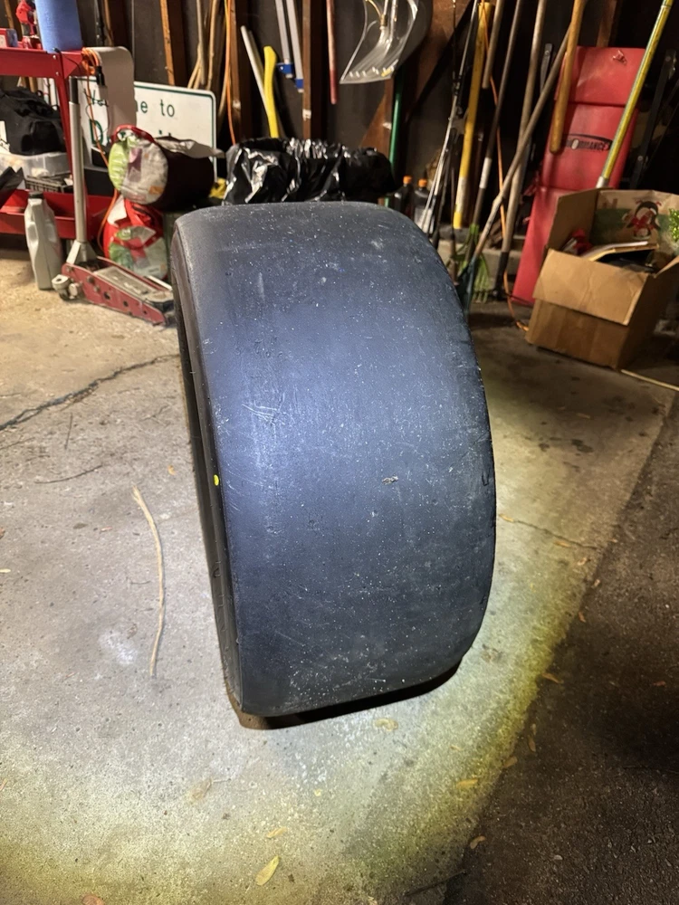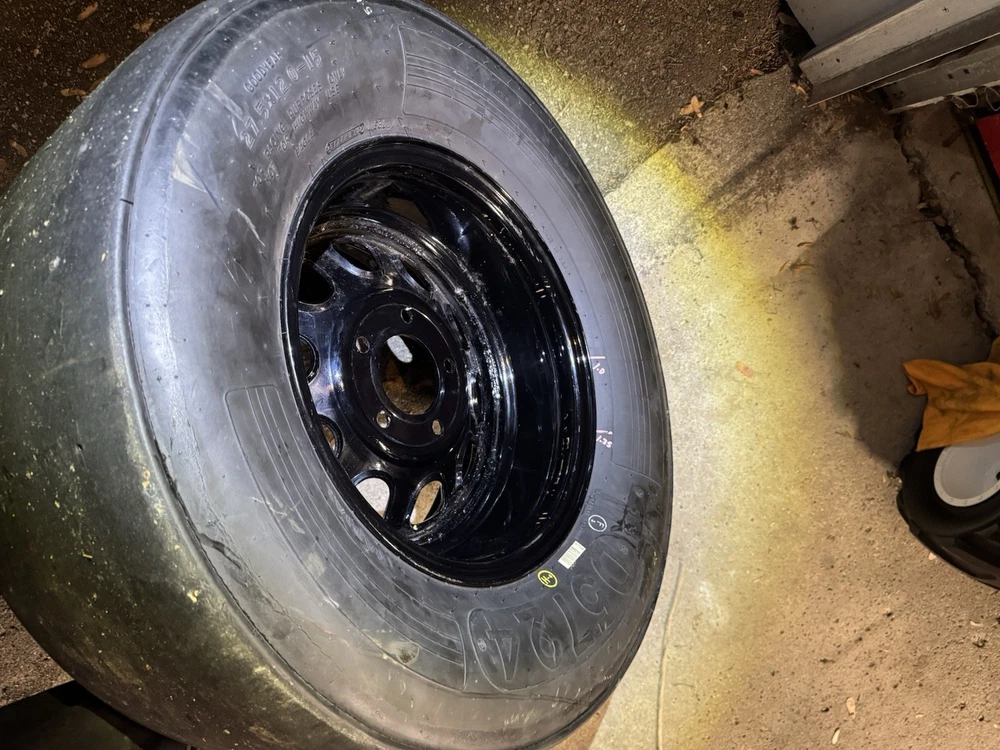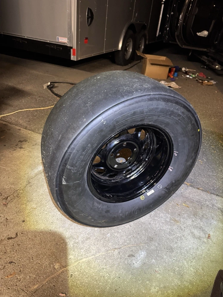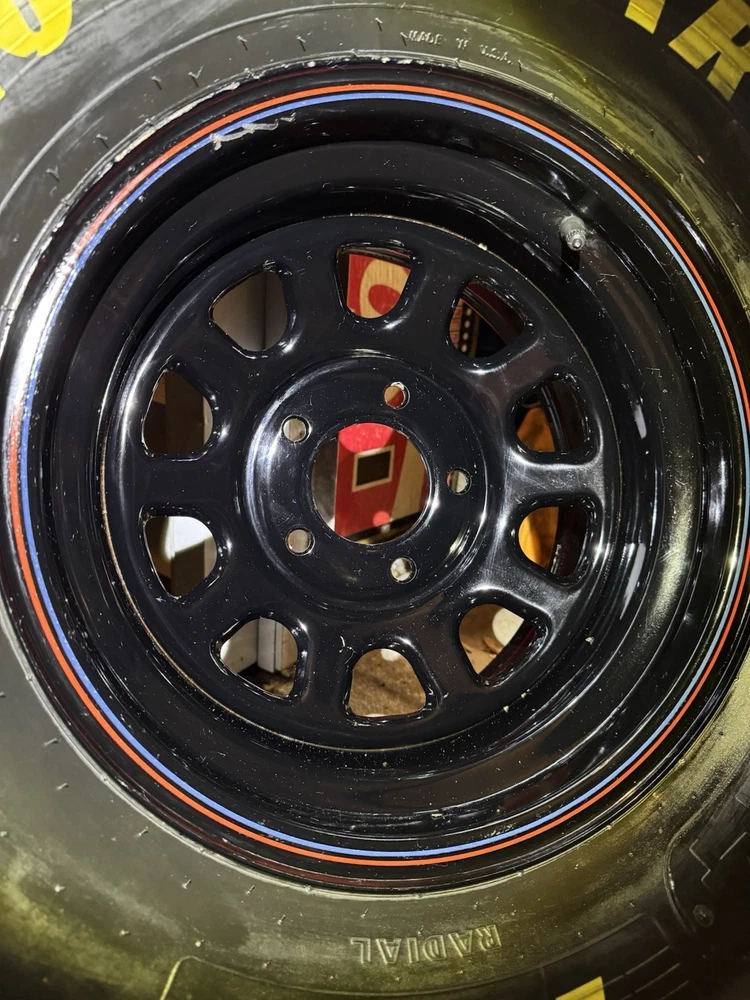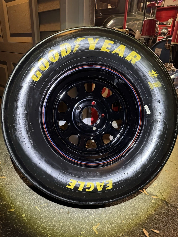 This wheel was a gift given to certain Goodyear Tire shop owners directly from NASCAR around 2000-2009. Brand new and in good condition (has had a few surface cracks from sitting but still holds air, see pictures). I used it at a bed side table for my kids for years. Tire is 27.5x12-15" and is marked with a circled "F" indicating that it's a front wheel. Model number - D5724 with 1993 date stamp. (93S29) You won't find another one like this especially untouched condition like this one. Awesome man cave piece for any NASCAR fan. $500 obo