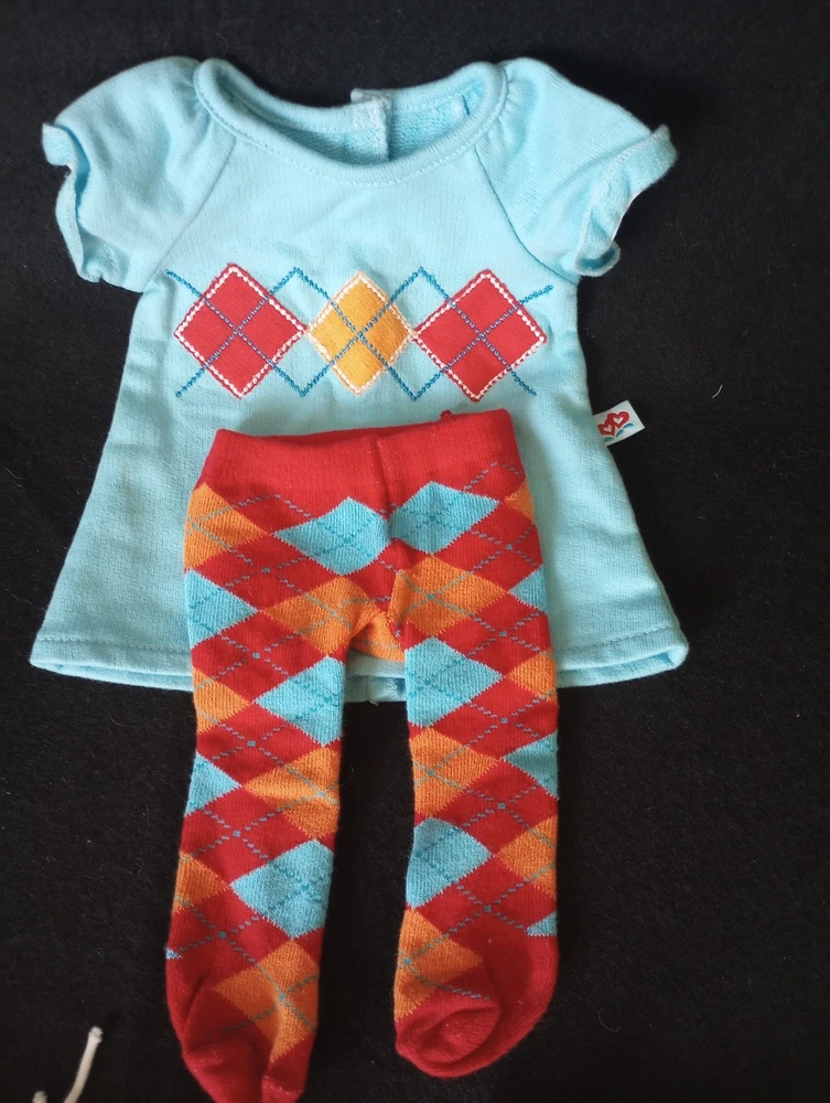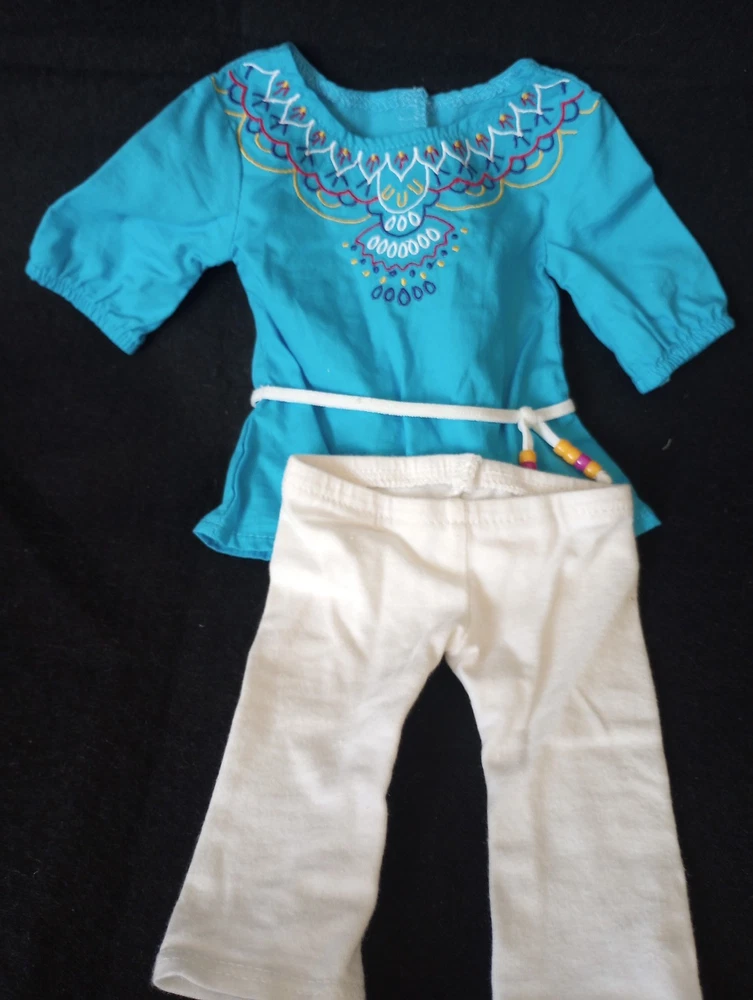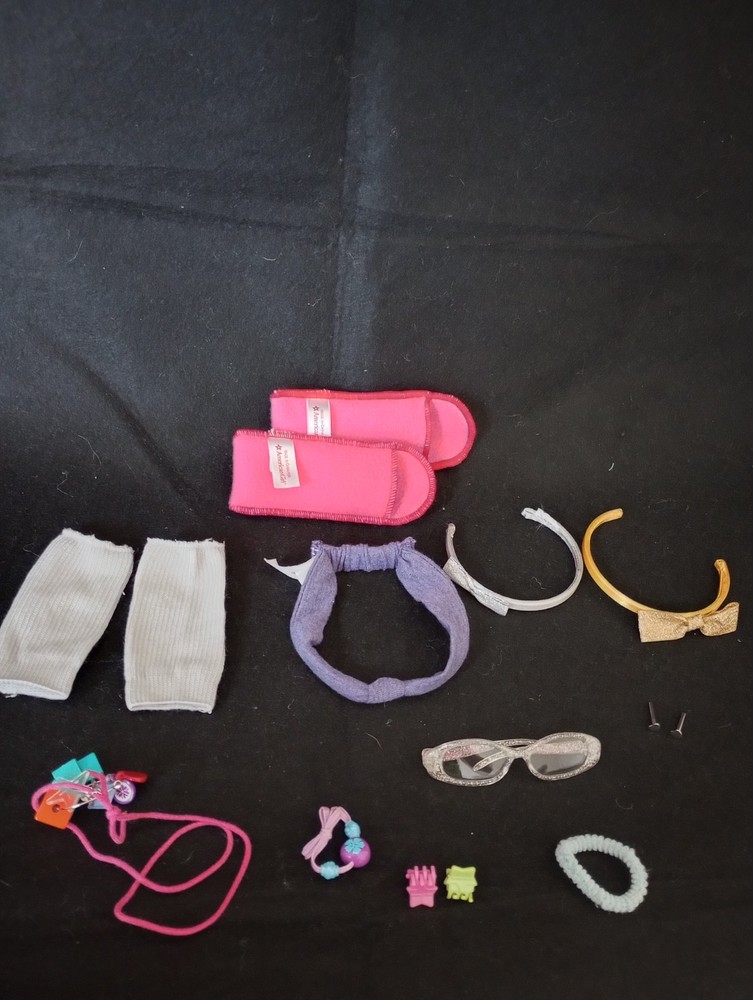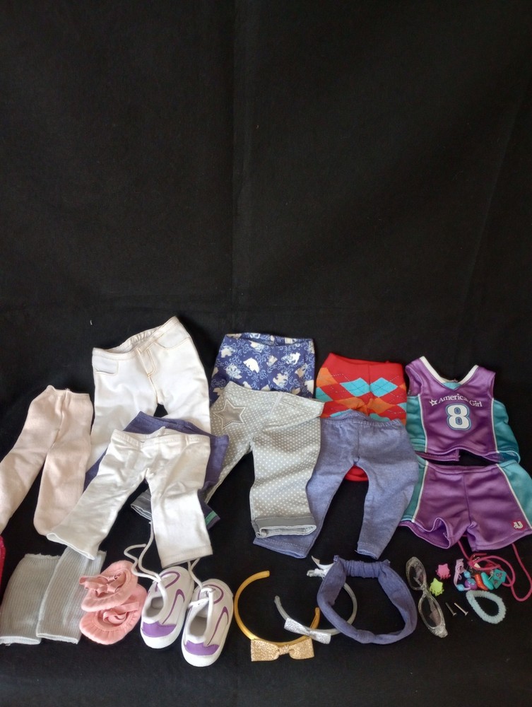 Lot of 34 prices including tops, a dress, pants, stocking, shoes and hair accessories. Some tops have little stains(Take a look at the last two pics). No holes, no other flaws. They are clean. They come from a smoke/pet free home. Sell as is.