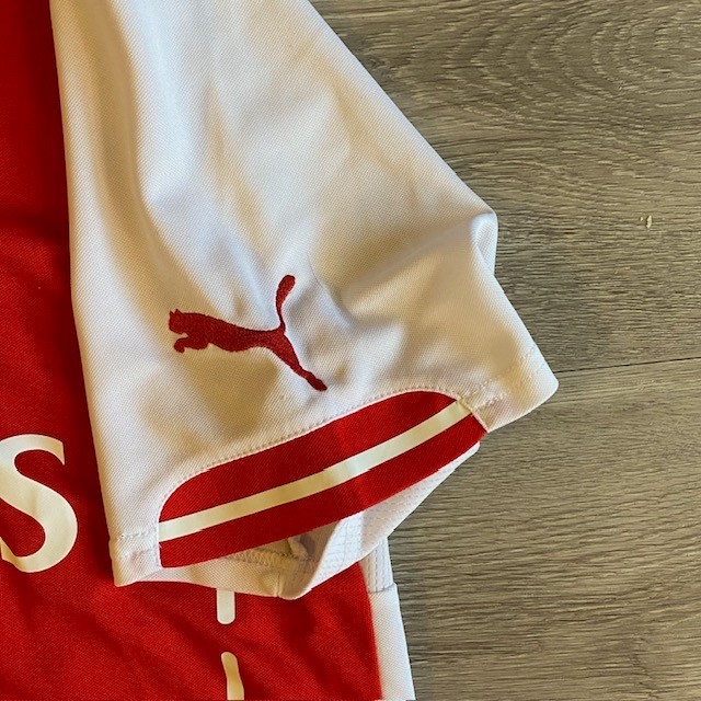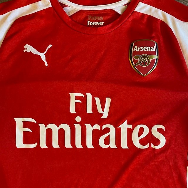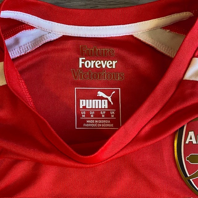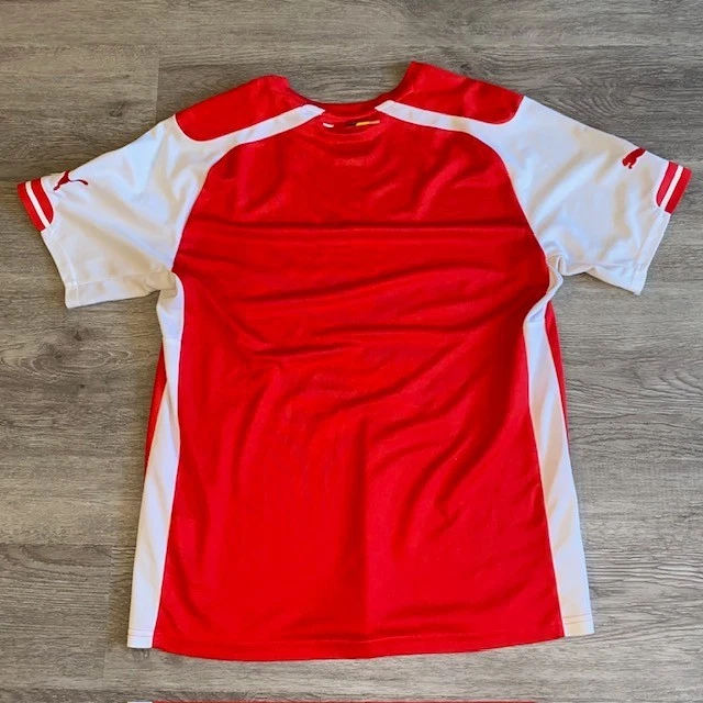Authentic Arsenal FC Puma Home Kit/Jersey 2014-2015 Size Medium EUC. No rips/tears/stains/holes. 100% Polyester Made in Georgia Style #746446 Machine Washable 20" Across Chest 25.5" Long