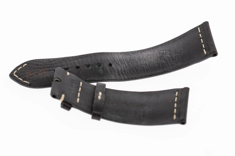 Breitling strap 100% Genuine Breitling 487X black calf leather watch strap fraying to the first keeper The strap measures 23mm wide at the lugs and tapers to 20mm wide at the buckle end. The strap pieces measure 115mm and 75mm in length. This item is pre-owned. If there are any questions feel free to message accordingly, thank you. WF ref. A277 © WF&Co. 2019 WATCHFINDER.CO.UK LTD, 23 KINGS HILL AVENUE, KINGS HILL, WEST MALLING ME19 4UA Company no. 04524723 | VAT no. 787 562 376 Registered Office Address: 15 HILL STREET, LONDON, W1J 5QT