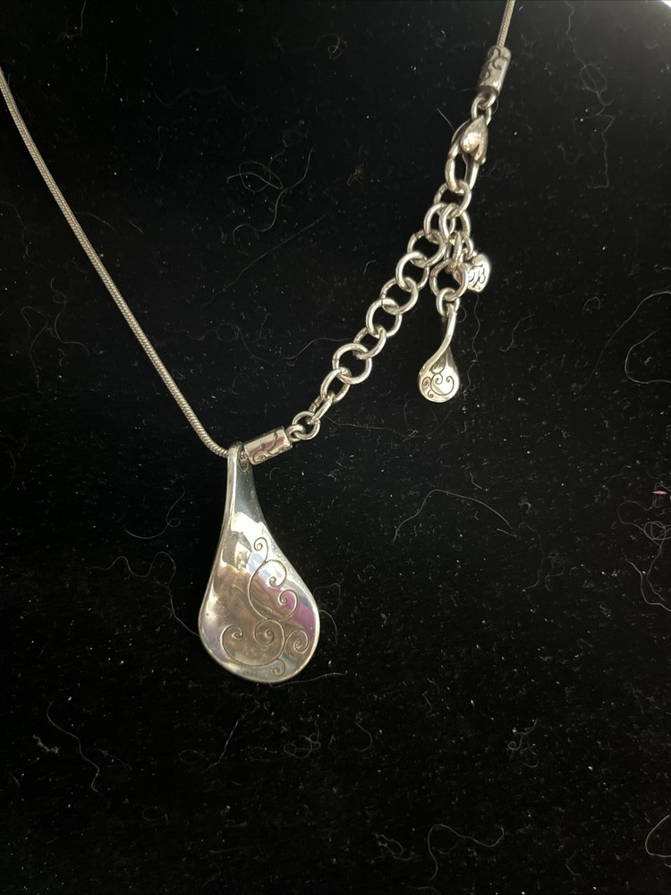 Elevate your jewelry collection with this elegant Brighton "Twirl" pendant necklace. The silver-plated lobster closure provides a secure fit, while the 18-inch necklace length sits perfectly around the neck. The pendant boasts a unique design that adds a touch of sophistication to any outfit. This authentic Brighton necklace is perfect for any occasion, whether it's a night out on the town or a casual day at the office. The silver color provides a classic and versatile look that pairs well with any outfit. Add this necklace to your collection today and enjoy the beauty and craftsmanship of Brighton jewelry.