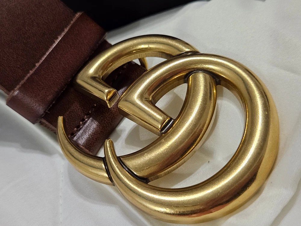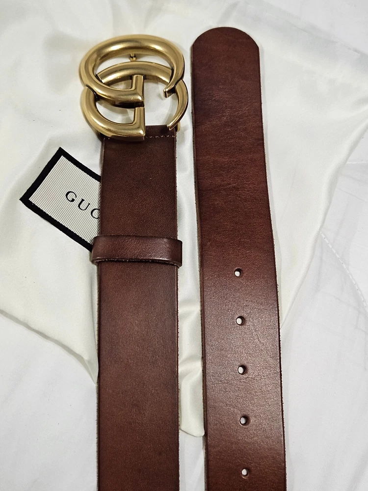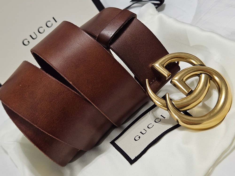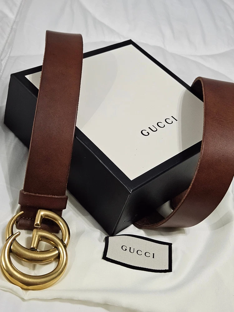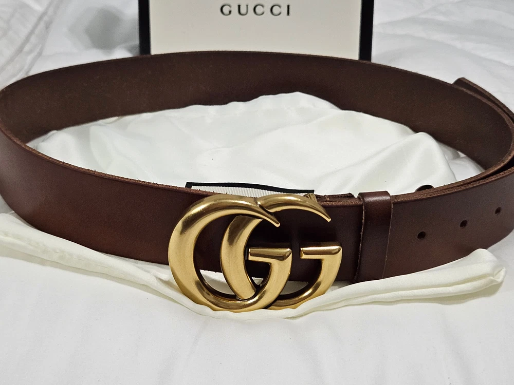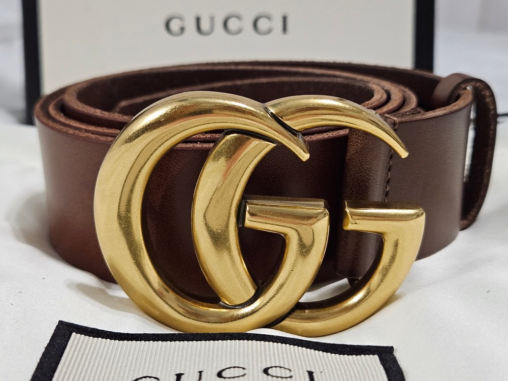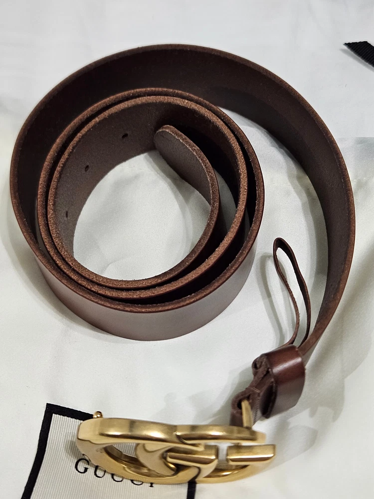 Brown Leather Gucci Belt 1.5" Version Gold GG Buckle Size 95cm fits 32-34" Waist - Box & Bag & Tag Included Ships Priority Mail Get it Fast! Beautiful Belt!
