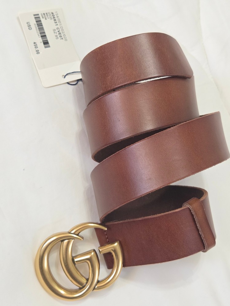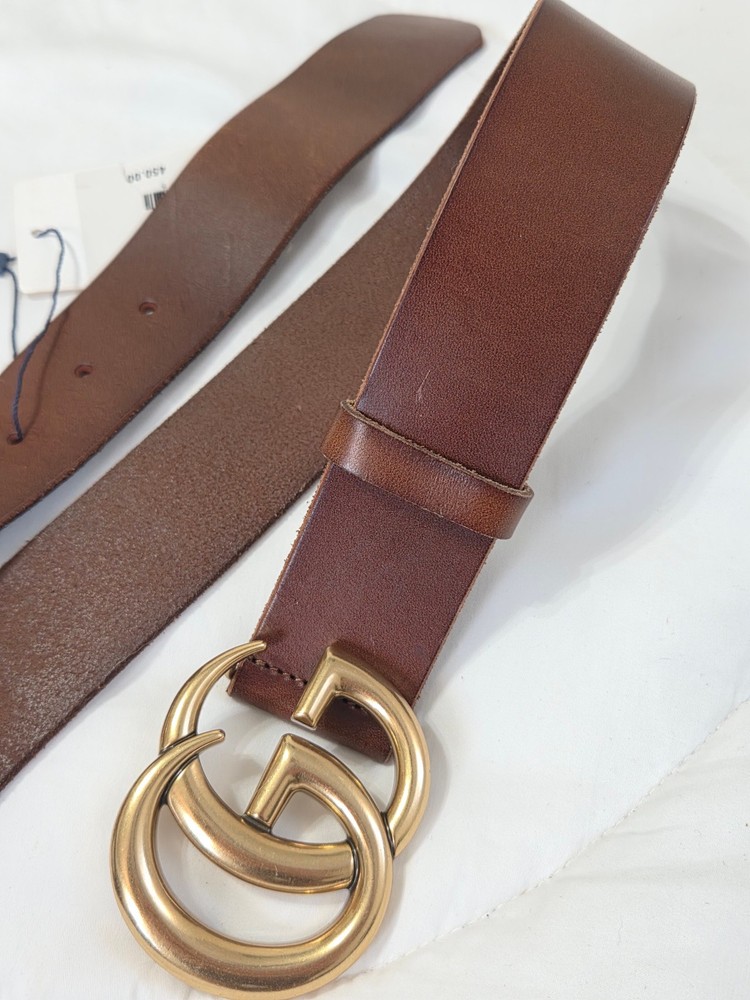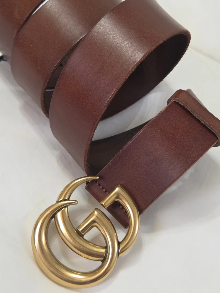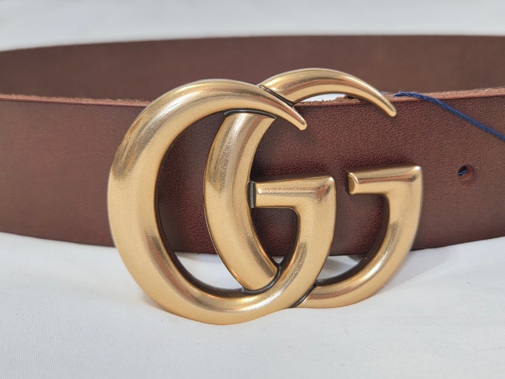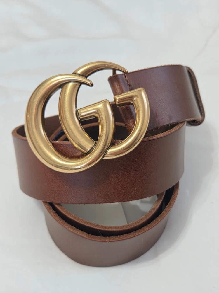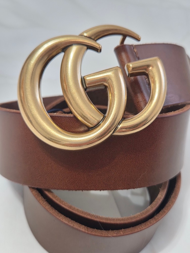 Authentic Brown Leather Gucci Belt 1.5" Version Gold GG Buckle Size 105cm fits 36-38" Waist - 1.5" Width Mint Condition Never Worn Original Dust Bag Included Fast Shipping!