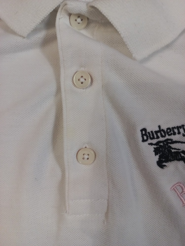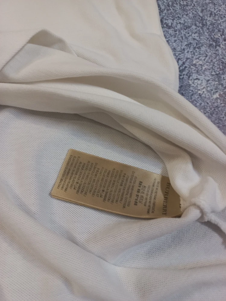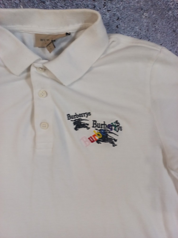 Add a touch of timeless British style to your wardrobe with this authentic Burberry men's polo shirt. Made from soft, high-quality cotton, it features a classic collared design with a rare embroidered racing-themed Burberry logo on the chest. A perfect choice for fans of iconic fashion with a unique twist. Product Details: Brand: Burberry Size: S (Small) Color: White Material: 100% Cotton Made in: Thailand Condition: there is a small stain Features: Embroidered Burberry logo with colorful race flags Button-up placket Classic fit Additional Information: β 100% Authentic π Fast Shipping π¦ Carefully Packed Feel free to message me with any questions!