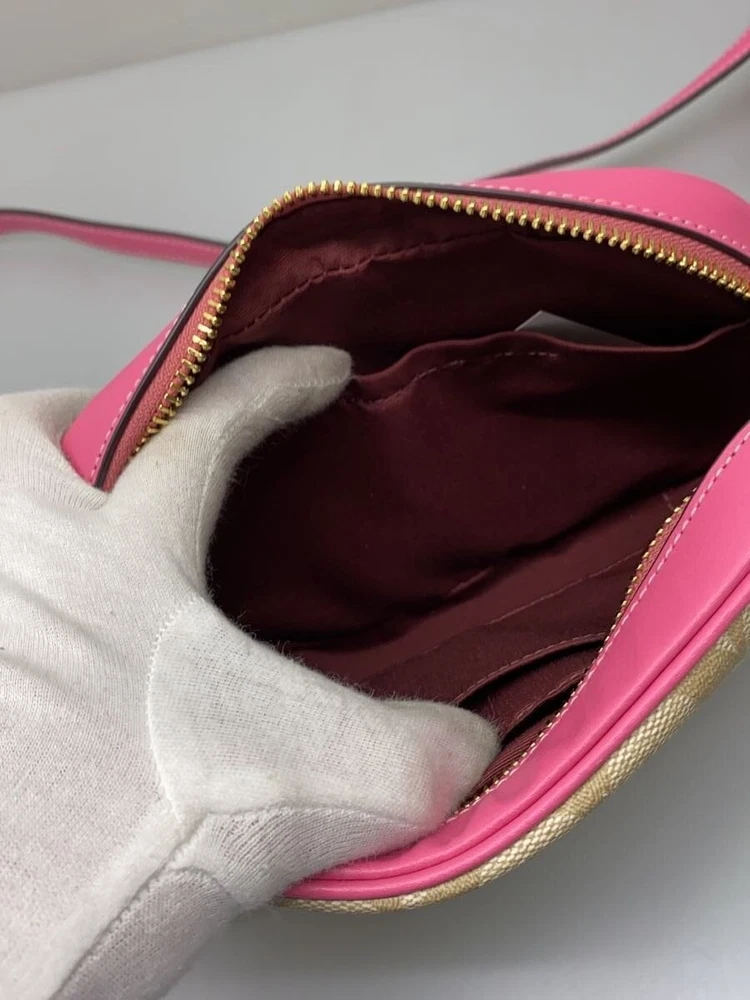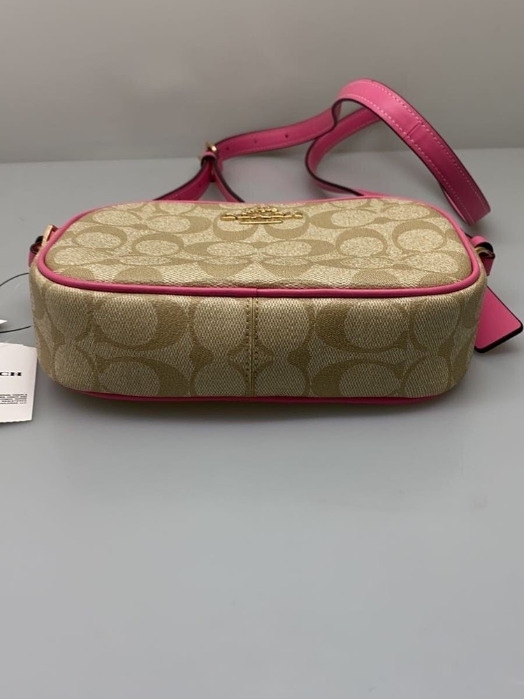 Authentic COACH Mini Jamie Camera Bag In Signature Canvas C9926 Khaki Pink Used