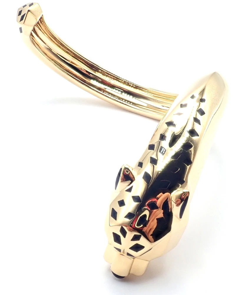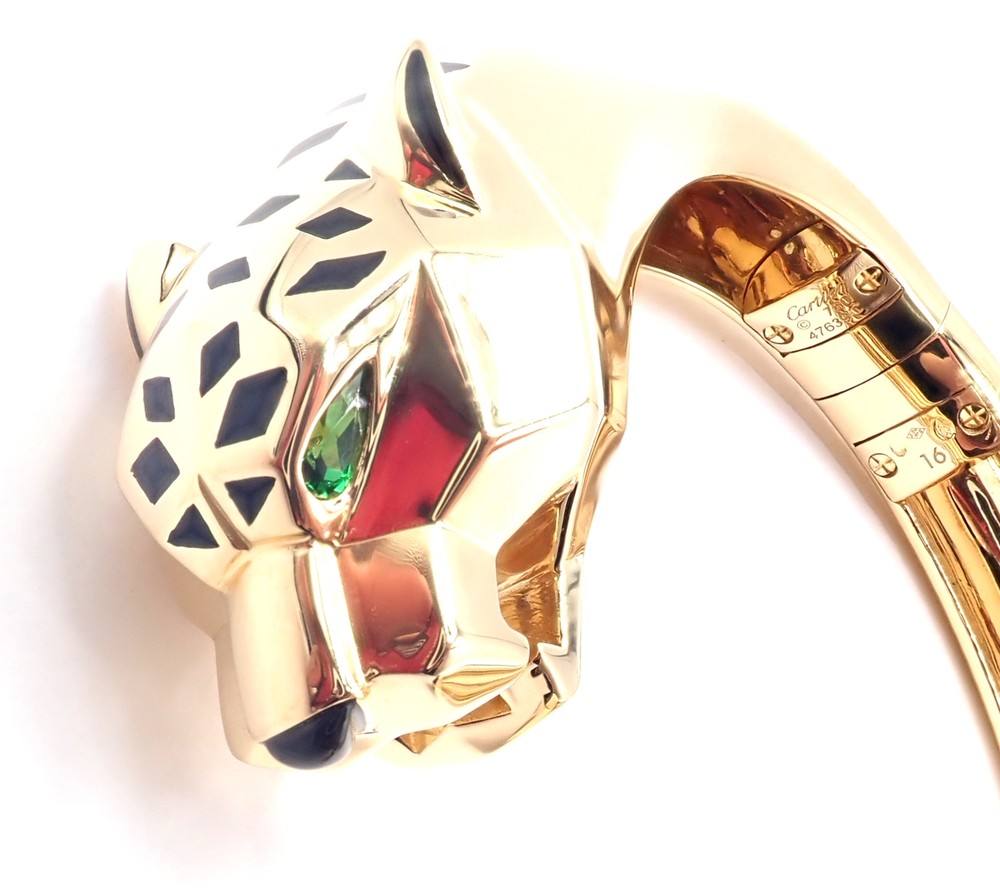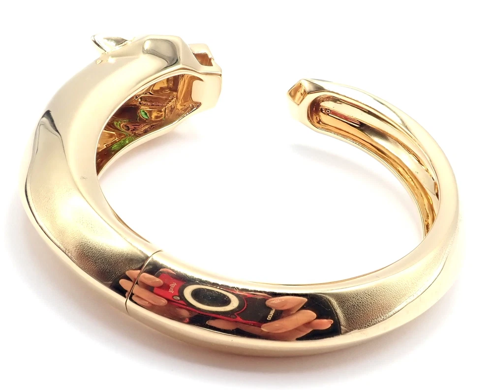 Authentic! Cartier Panther Panthere 18k Yellow Gold Bangle Bracelet Size 16 Cert Welcome to Fortrove Payment / Shipping / Returns STORE HOME About Us NEW ARRIVALS ENDING SOON Add to Favorites FEEDBACK Contact Us Authentic! Cartier Panther Panthere 18k Yellow Gold Bangle Bracelet Size 16 Cert Product Description About This Piece: The Cartier Panther Panthere bangle is a luxurious piece, crafted in 18k yellow gold. This size 16 bracelet features the iconic panther motif, a symbol of elegance and power. Its meticulous craftsmanship and sleek design embody Cartier's legendary style, making it a coveted accessory for any fashion-forward individual. This bracelet comes with certificate of authenticity from 2009 and a Cartier box. Size: 16 Fits wrists 6.25" to 6.75" Weight: 92 grams Width: Stones: From 19mm to 11mm 2 emerald eyes and a black onyx nose Hallmarks: Cartier 750 16 476XXX(serial number has been omitted) T3504onndd About Us Welcome to Fortrove, We have been providing fine estate and designer jewelry for over thirty-five years. We spent this time discovering treasures from all over the world. Originally located in Philadelphia on historic Jeweler's Row, Fortrove has expanded over the years and is now cultivated in the high end designer market to the world. We specialize in beautiful jewelry, handbags, and timepieces from around the globe. At Fortrove we believe that an artful piece of jewelry is a fine investment and wearable art. Now Fortrove is here to offer you a plethora of fine designer jewelry that is extraordinary in every way. From all of us to all of you at Fortrove. - Thank you and have an extraordinary day! Fortrove, Inc. Payment PayPal Payments Only. Buyer must have PayPal verified address. We accept Visa, MasterCard, Discover, and American Express via PayPal only. We charge 6% sales tax for sales in PA, this is applied at checkout. International Orders must pay by paypal with a high rating. Sorry No international credit cards. International law does not allow us to verify credit card holders valid address. Feel safe purchasing with FORTROVE Shipping World Wide shipping (excludes: Russia, Africa, and Indonesia) All international items are shipped via FedEx International which includes door to door tracking/signature and require phone number of destination. Returns *Returns are accepted for nearly any reason within 14 days. If you are not completely satisfied with your item please return to us for a full refund or an exchange. *Item must be in same condition as received Feedback Contact Us INFORMATION Fortrove Home Easy Payment Shipping info Returns policy FORTROVE New Arrivals Ending Soon Feedback Contact Us Newsletter Add Fortrove to your Favorites and receive my email newsletters about new items and special promotions! Subscribe Payment Options © Copyright 2023 Fortrove, Inc. All rights reserved.