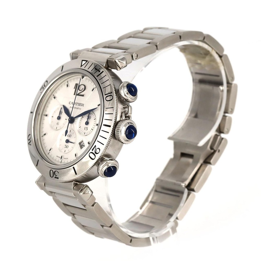 Authentic Cartier Pasha de Cartier Chronograph WSPA0018 SS Automatic #270-00... Authentic Cartier Pasha de Cartier Chronograph WSPA0018 SS Automatic #270-00... Condition Rank A New Brand new Rank S Acquired from individual in not used condition. Rank A Excellent condition. Slightly used. Rank B Fair condition. There are some scratches, stains. Rank C Obviously used. There are certain scratches, stains. Accessories Genuine Box Warranty ActualSize Case diameter: 41mm Max Wrist size: 19.5cm AdditionalInfo Automatic waterproof Brand Cartier Carat CenterStone Clarity Color Dial Colors: Silver ConditionDescription ConditionRank A Cut Features Gender Mens' Material Case: SST Bracelet: SST Model MPN WSPA0018 Repaire Size Case diameter: 41mm Max Wrist size: 19.5cm Stone Style Weight Description There are some minor scratches, but it is in good condition. We are conducting precision adjustment and simple exterior finishing. Accessories may have scratches, stains, or signs of aging. Luxury Bags Wallets & Accessories Jewelry Watches Please Read Before Order About Customs Import duties, taxes, and charges are not included in the item price or shipping cost. These charges are the buyer's responsibility. Please check with your country's customs office to determine what these additional costs will be prior to bidding or buying. We are not acceptable for false declaration of prices and any other falsified information. Please pardon us if some items are sold out We sell on multiple venues such as eBay, and our website/physical retail stores. As a result, orders will be fulfilled on a first-come first-served basis. We apologize for the inconvenience and we thank you for your understanding. You will be hearing from us if an item is already sold elsewhere in a timely manner. Because of the time difference, please expect delay in response. Condition The damages are described and shown with the pictures as much as possible, but we are not able to cover all of the damages on our items. Ranking of Condition is only for the item not included packaging stuffs, guarantee card and tags. Payment & Shipping Payment We accept PayPal only. Cancelation Please pay within 3days after you purchase. Your order will be canceled if we don’t hear from you. Shipping and Handling We only ship to PayPal registered address after payment is cleared by PayPal. Handling time varies between 3-10 business days depending on items location. All of our items will be shipped/delivered by FedEx unless otherwise notified. About Customs Import duties, taxes, and charges are not included in the item price or shipping cost. These charges are the buyer's responsibility. Please check with your country's customs office to determine what these additional costs will be prior to bidding or buying. We are not acceptable for false declaration of prices and any other falsified information. Return Policy Returns Please contact us within 3 days after receiving the item if you would like to return the item. If you wish to return, please contact us first through messages. Returned item must be kept in good condition for full refund. Buyer need to pay for return shipping. We are not acceptable for money back for duties paid. Size Table About Size The size of the item is measured by our professional stuff. The size of item is Japanese size. 1cm ≈ 0.39 inch Ring Size About Authenticity About US 100% Authentic Guarantee Komehyo is the largest reseller of pre-owned luxury brand items in Japan. Our expert appraisers are highly experienced and we do not deal with fake/counterfeit products. Learn more about us: We are listed on the Tokyo Stock Exchange. Anti-counterfeiting measures Komehyo is a member of the Association Against Counterfeit Product Distribution(AACD). AACD’s goal is to create a sound market for genuine brand products by eliminating counterfeit and fraudulent products from the market.