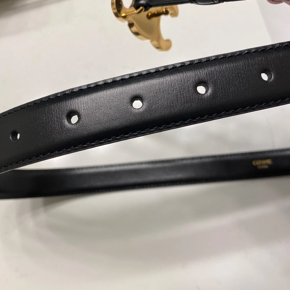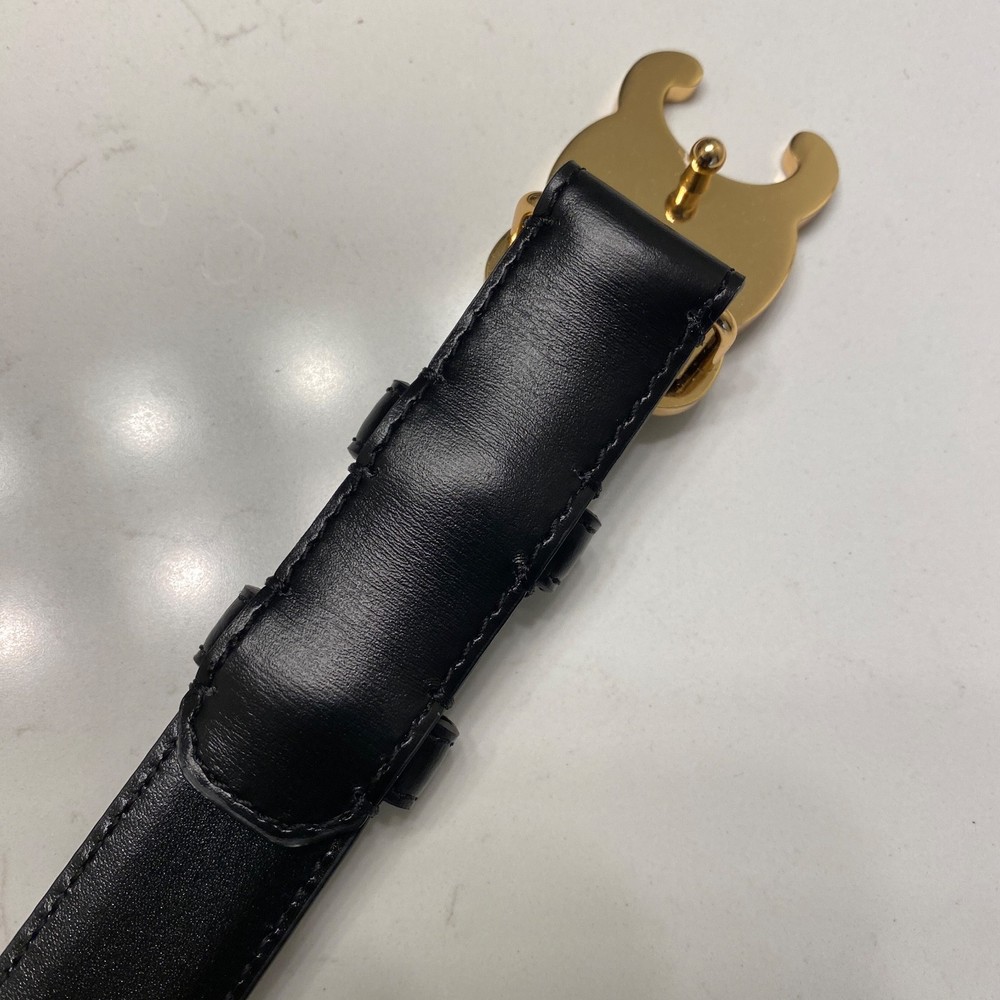 Finish your outfits on a sophisticated note with this smooth leather belt from Celine. The black leather piece is 100% authentic with the brand's iconic logo front and centre, shining bright in gold-tone metal. Belt size 85/34 fits women size 4-8 width 1". Excellent condition without any visible signs of wearing. dust bag will be included.