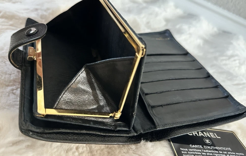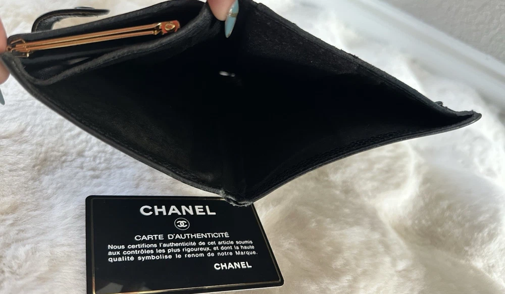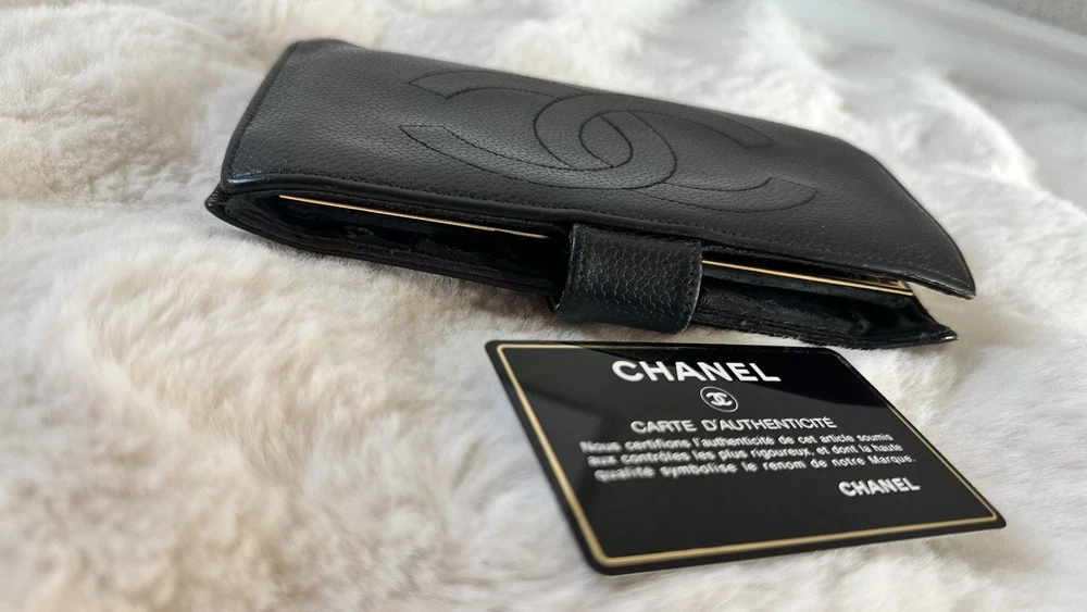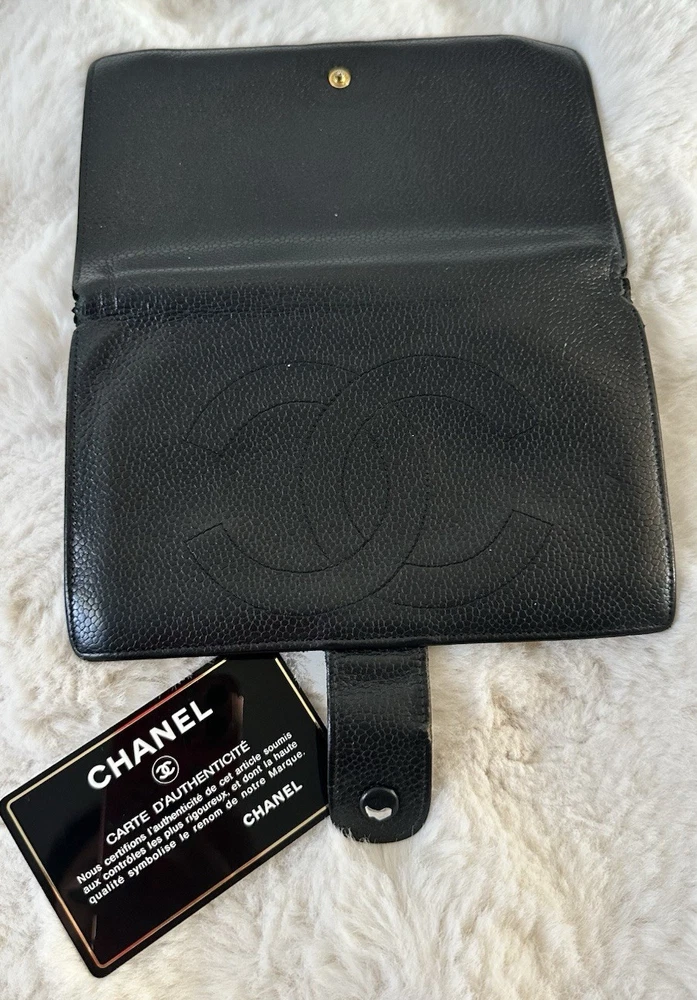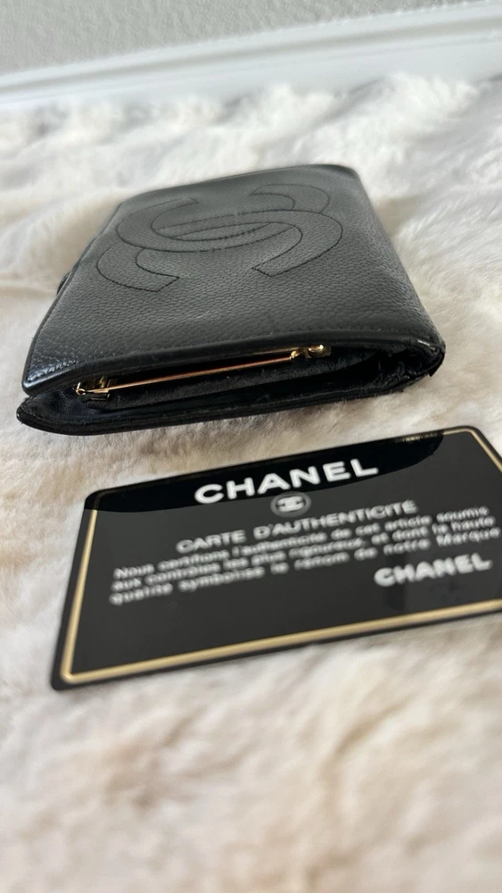Elevate your everyday style with this authentic Chanel wallet crafted in iconic black caviar leather featuring the classic CC logo. A timeless investment piece that blends luxury and functionality. Pre-owned. Please see all photos