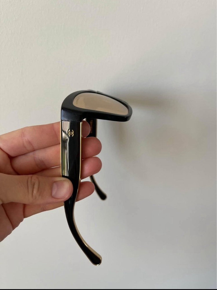 Theme: Designer Frame Material: Plastic Style: Cat Eye Country/Region of Manufacture: Italy Lens Color: Gold Type: Sunglasses Brand: CHANEL Department: Women Vintage: No Frame Color: Black and Gold