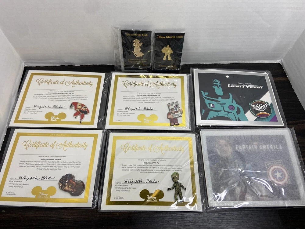 Authentic Disney Movie Club DMC / VIP Pins - Lot of 6 + Pendants GROOT, BUZZ +