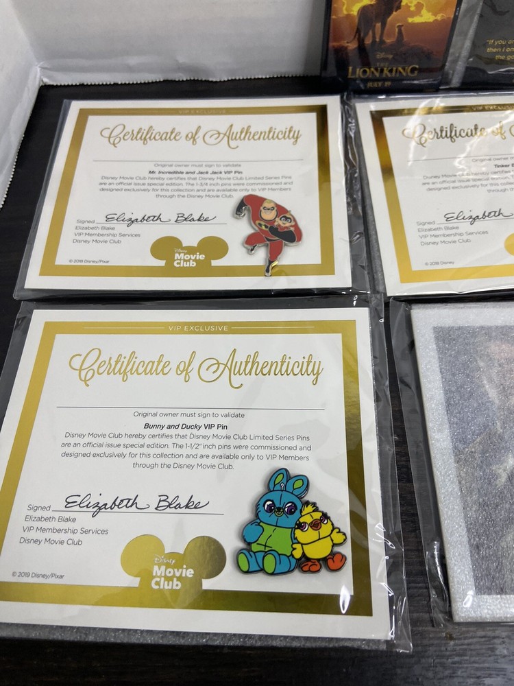 Immerse yourself in the magic of Disney with this exclusive lot of 6 Disney Movie Club (DMC) VIP pins, each accompanied by a charming pendant featuring beloved characters Groot and Buzz Lightyear. These pins are a must-have for collectors and fans, showcasing an array of vibrant designs inspired by the enchanting world of Frozen and the creativity of Pixar. Each piece in this collection stands out with its unique theme and high-quality craftsmanship, emblematic of the contemporary Disney era (1968-Now). Though the country of origin remains a mystery, the allure of these pins is undeniable, making them a prized addition to any Disneyana enthusiast's treasury.