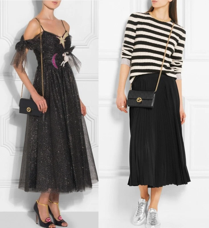 1. This stunning GUCCI crossbody bag is a must-have! The black pebbled leather is luxuriously soft, and the iconic Interlocking G logo adds instant elegance. The detachable chain strap makes it versatile for day or night, while the compact size fits essentials perfectly. The craftsmanship is impeccable—truly a timeless piece worth every penny. Love how lightweight yet durable it feels, and the gold accents give it that perfect high-end touch. Definitely a head-turner!