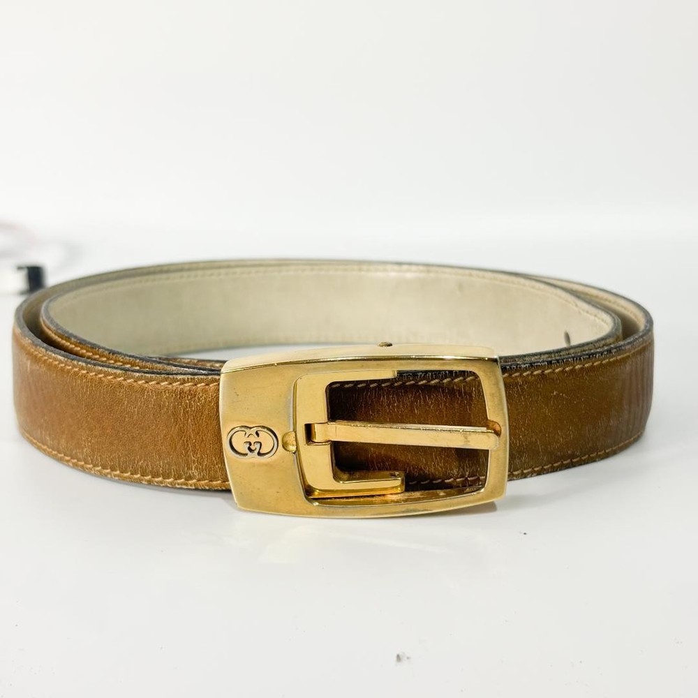 $ 83.48GUCCI buckle belt G Logo hardware Gold Authentic Made in Italy Leather Black