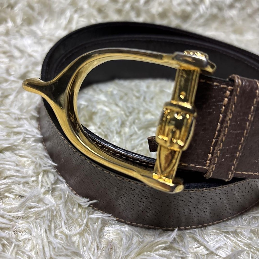 This vintage GUCCI belt is a timeless piece—rich brown leather with gold hardware, made in Italy, and still in great shape despite minor wear. The unisex design fits well, and the sizing is flexible with multiple holes. Perfect for adding a luxe touch to any outfit. Ships from Japan, so check for included accessories before buying. A fantastic find for the price!
