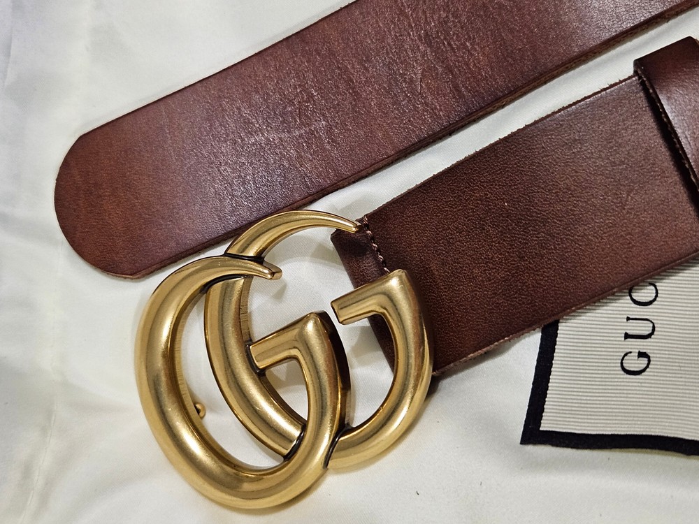 Brown Leather Gucci Belt 1.5" Version Gold GG Buckle Size 105cm fits 36-38" Waist - Box & Bag & Tag Included Ships Priority Mail Get it Fast! Beautiful Belt!