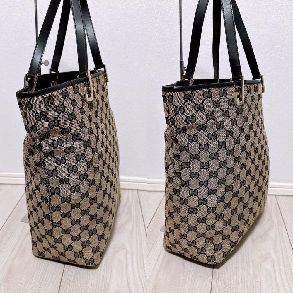 1. This GUCCI GG tote is a timeless classic—perfect size, sturdy canvas, and that iconic black look. Light corner wear gives it character, but overall it’s in great shape. Shipping from Japan was smooth, and the seller was super responsive. Exactly as described, no surprises. Love how spacious it is for daily essentials while still looking chic. Highly recommend!