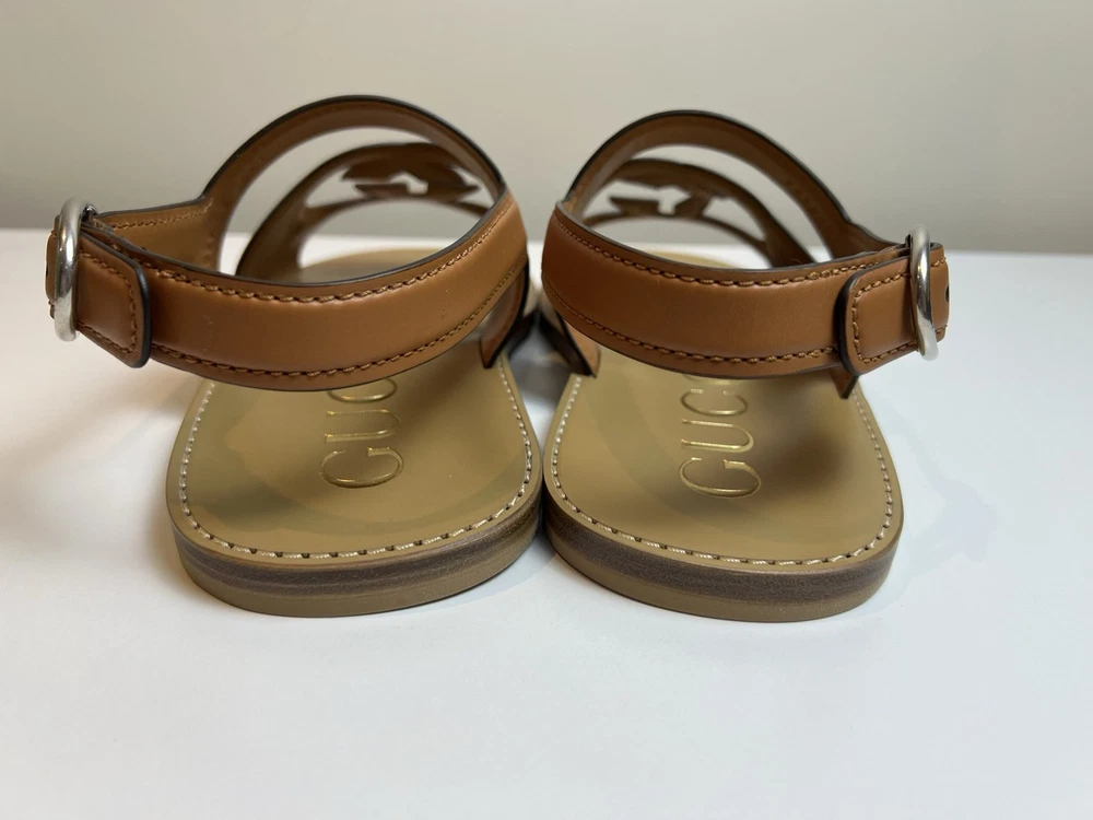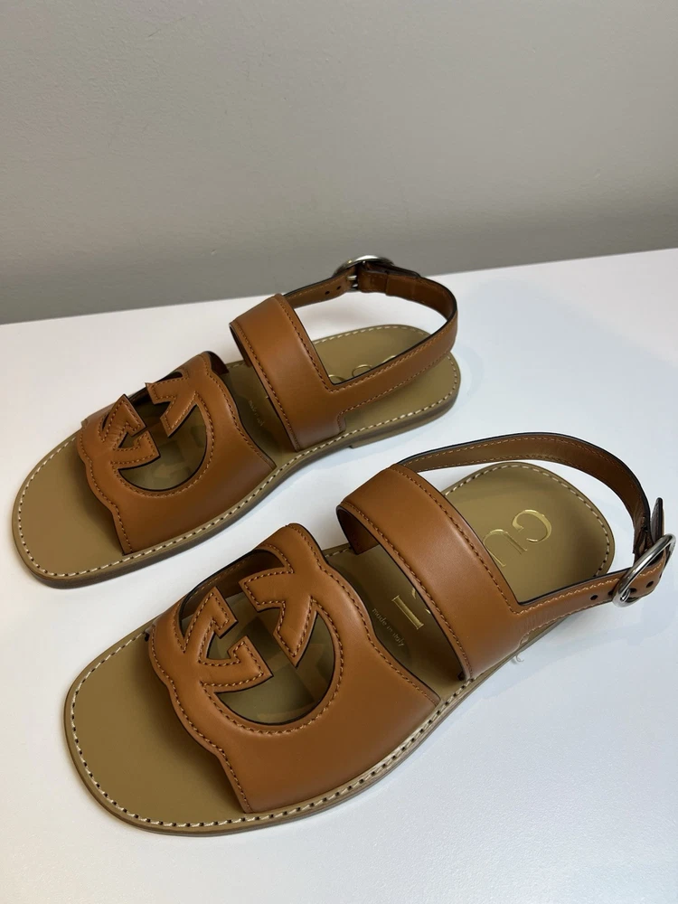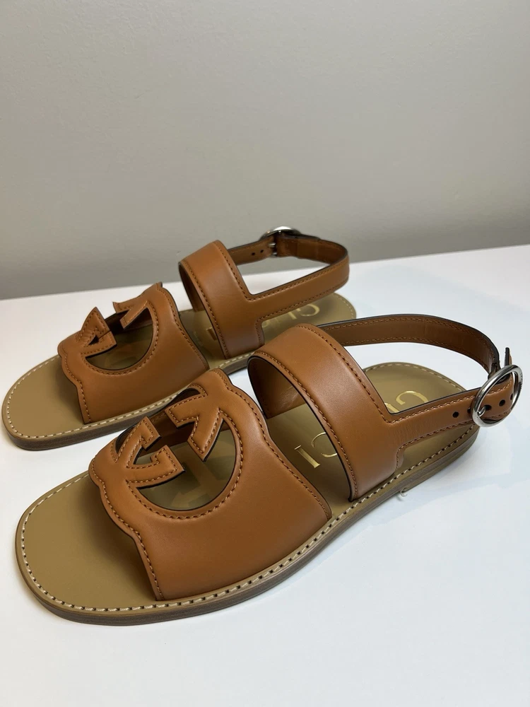 Authentic Gucci GG Logo Leather Sandals UK 9 US 9.5
