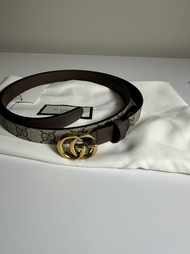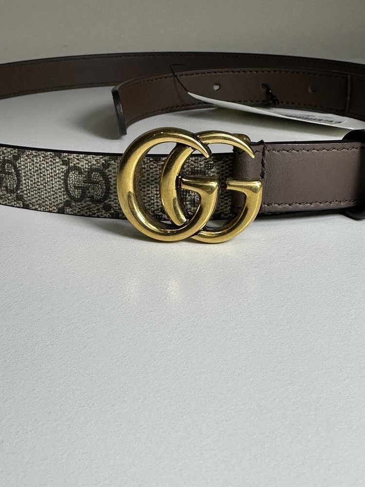 Description: Item: Gucci GG Supreme Belt 100% Authentic (all our Gucci products are directly sourced from Gucci) Size: 100 cm / 40 inch Color: Beige and brown GG canvas with brown leather trim Buckle: Antique gold-tone Double G Material: GG Supreme canvas and leather Made in Italy Condition: NWT Comes with a Gucci dust bag