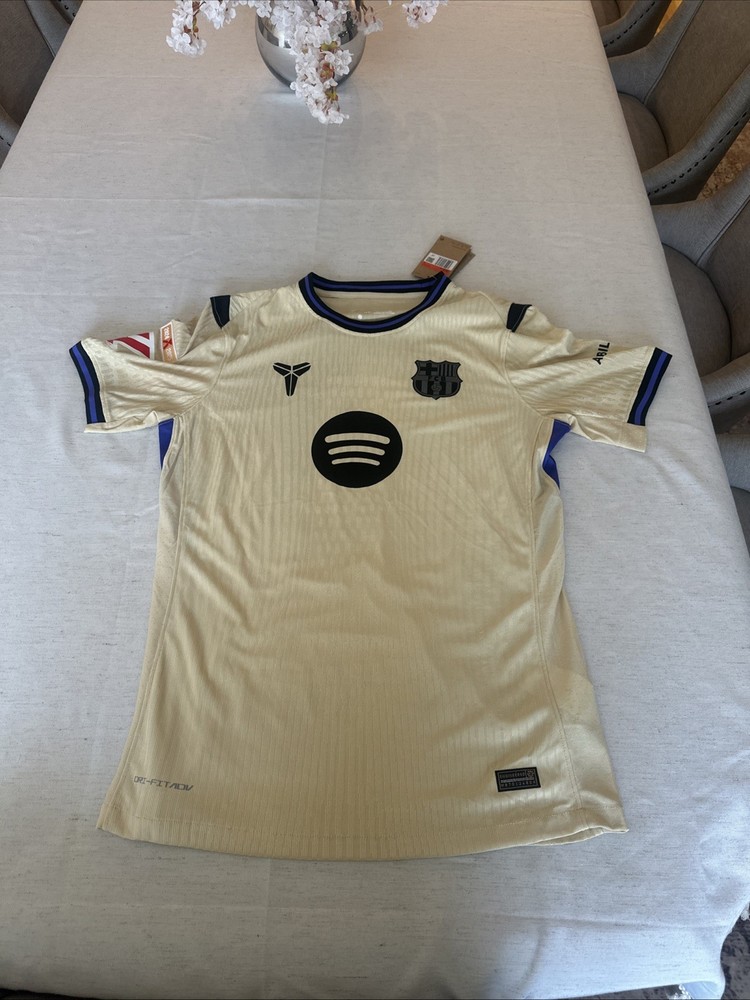 THIS JERSEY IS BRAND NEW WITH THE NIKE TAGS!!! The product is an authentic jersey personalized with the names of Laliga Lamine Yamal Barca and Koby, featuring the iconic Lionel Messi. Officially licensed by Nike and designed for men in size L, this jersey represents FC Barcelona, one of the top soccer clubs in the world. Perfect for fans of soccer and football enthusiasts alike, this jersey is a must-have item for supporters of Messi and Barcelona. Show your allegiance to the team and player with this unique and high-quality fan apparel.