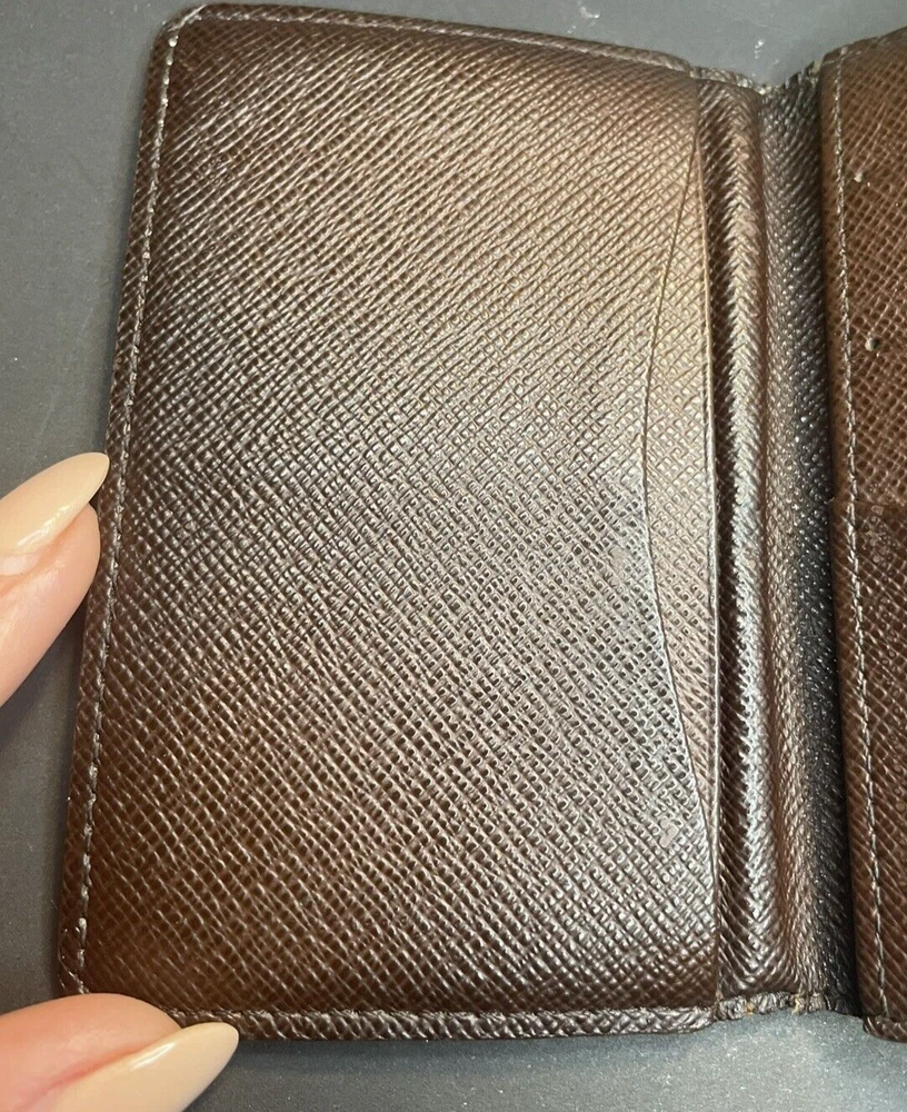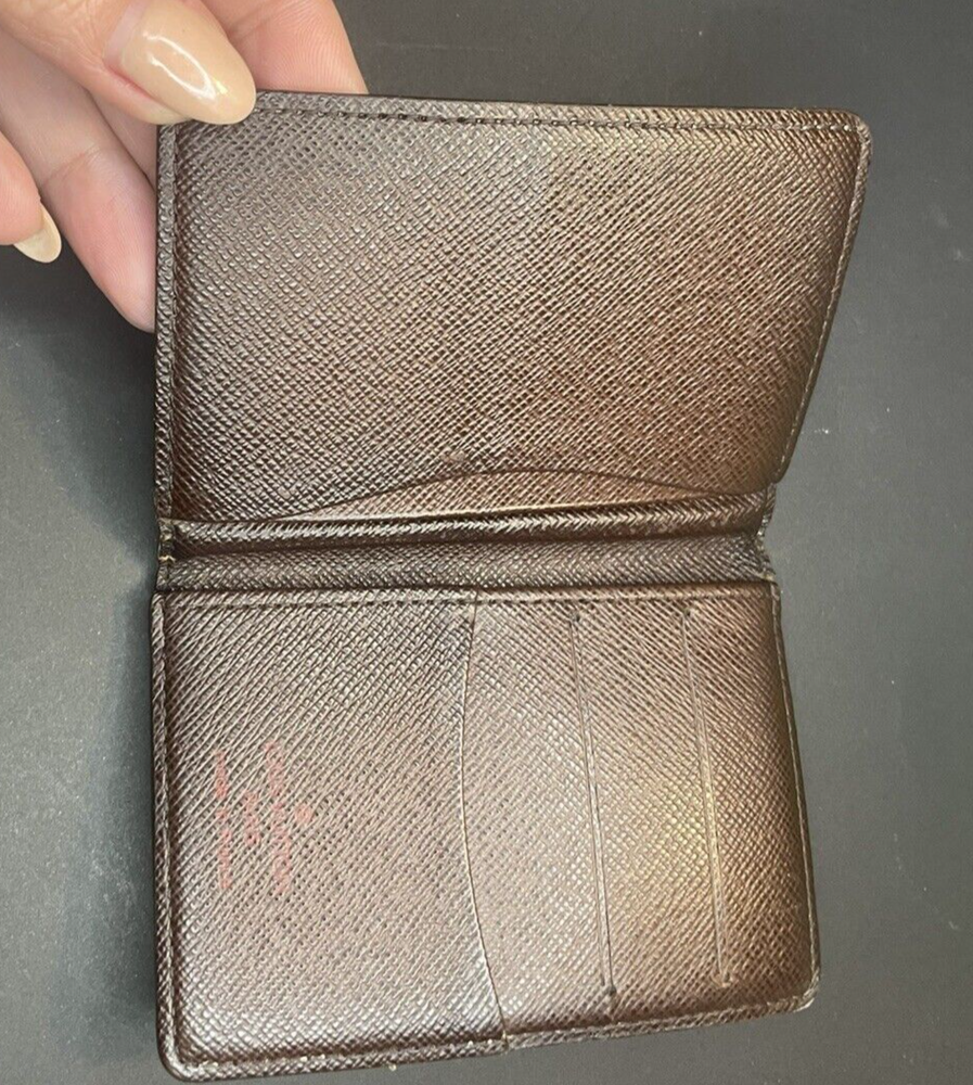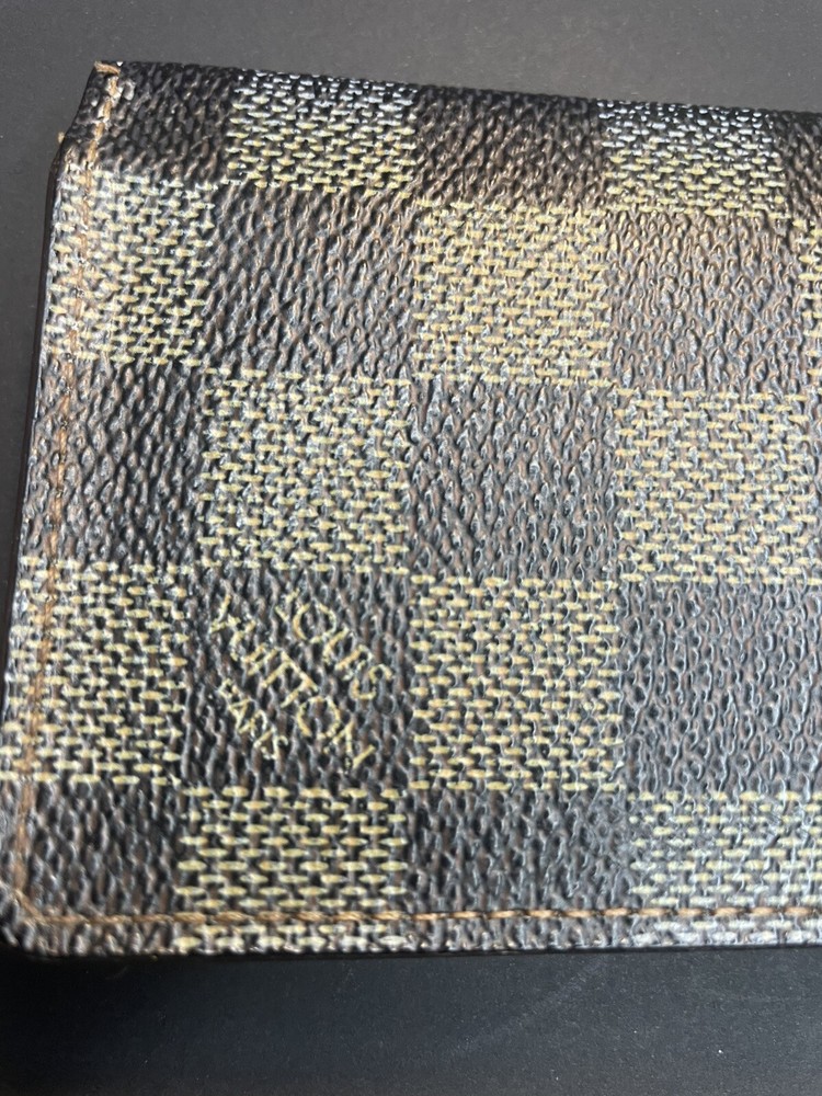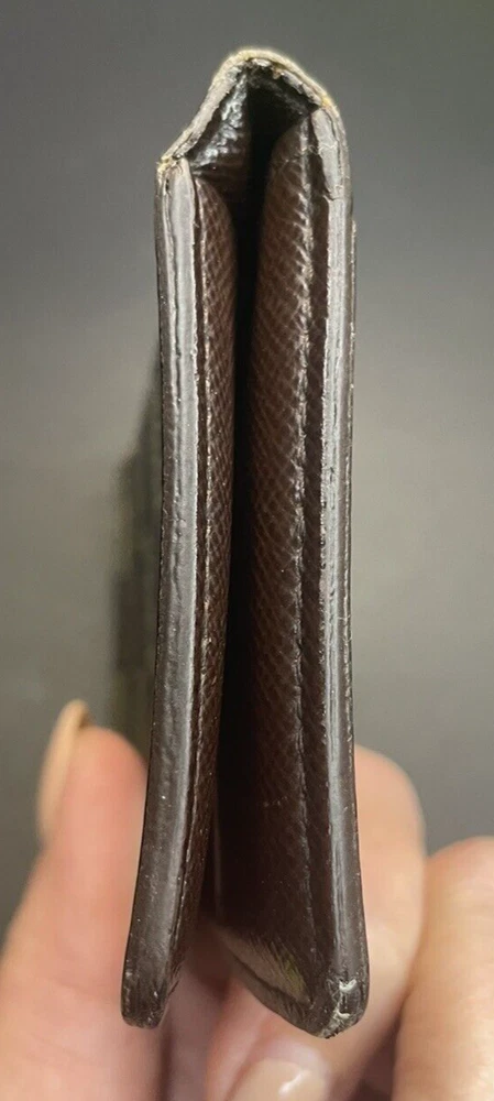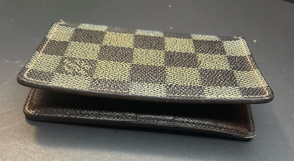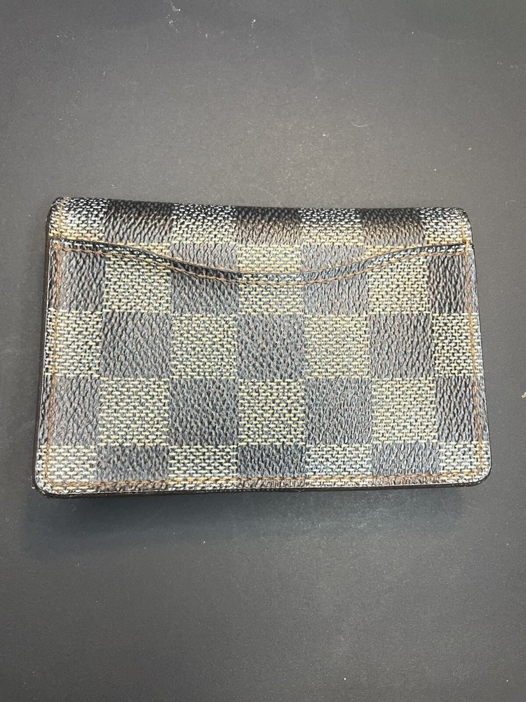 1. This Louis Vuitton card case is a timeless piece—perfect for everyday elegance. The Damier pattern and rich leather give it a sophisticated look, while the compact bifold design keeps cards secure. Though it shows slight wear, the vintage charm adds character. A must-have for LV lovers who appreciate classic craftsmanship.