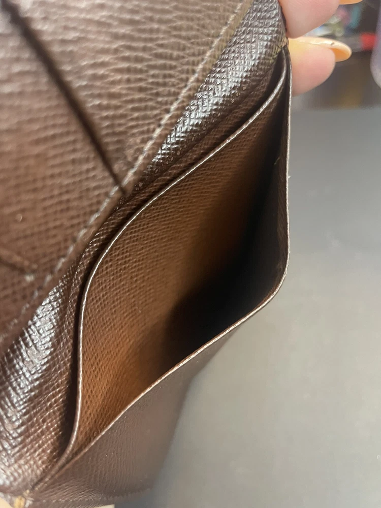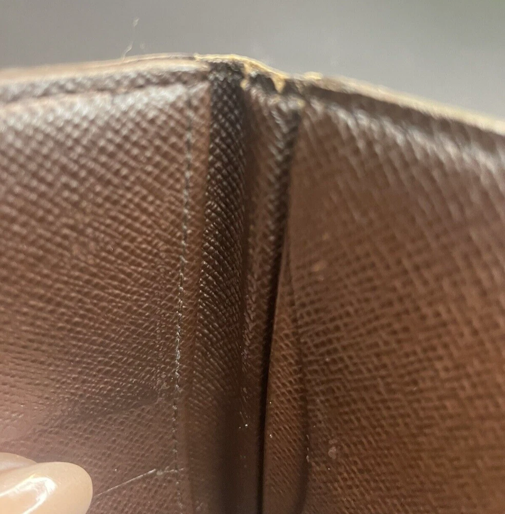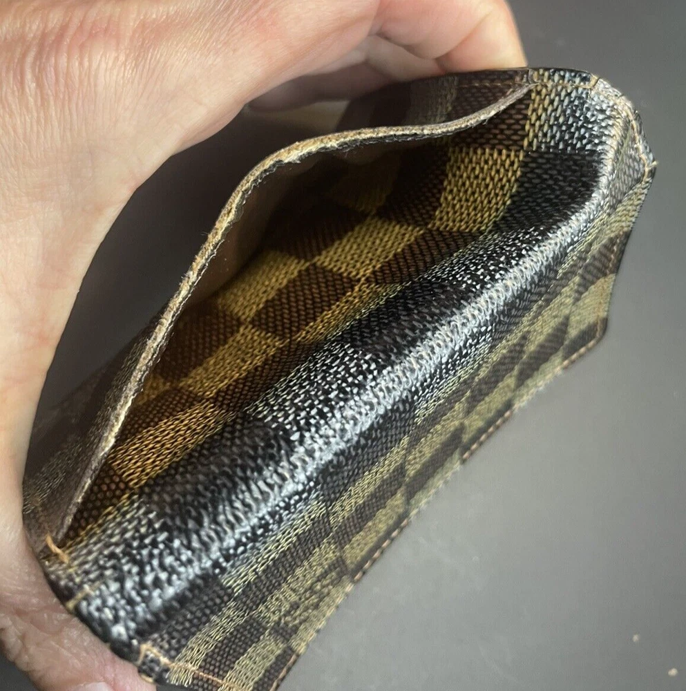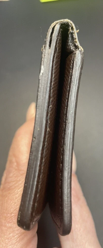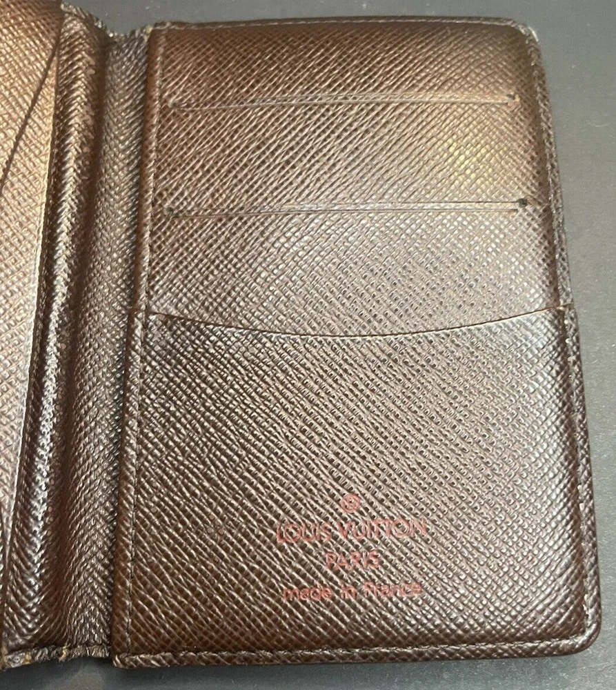 1. This Louis Vuitton card case is a timeless piece—perfect for everyday elegance. The Damier pattern and rich leather give it a sophisticated look, while the compact bifold design keeps cards secure. Though it shows slight wear, the vintage charm adds character. A must-have for LV lovers who appreciate classic craftsmanship.