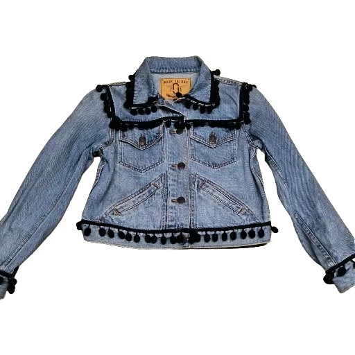 Amazing Marc Jacobs denim jacket. Embellished on all the seams with black pom pom tassels. Size small and the wash is Vintage indigo. I bought this new jacket many years ago. I literally wore it once and put it in my closet. It hasn't been out since. Pretty sure I bought this over 20 years ago. It was kept in a garment bag so it's mine and fresh and clean.
