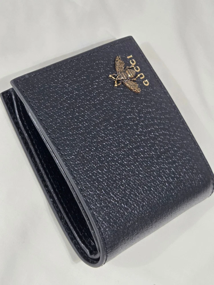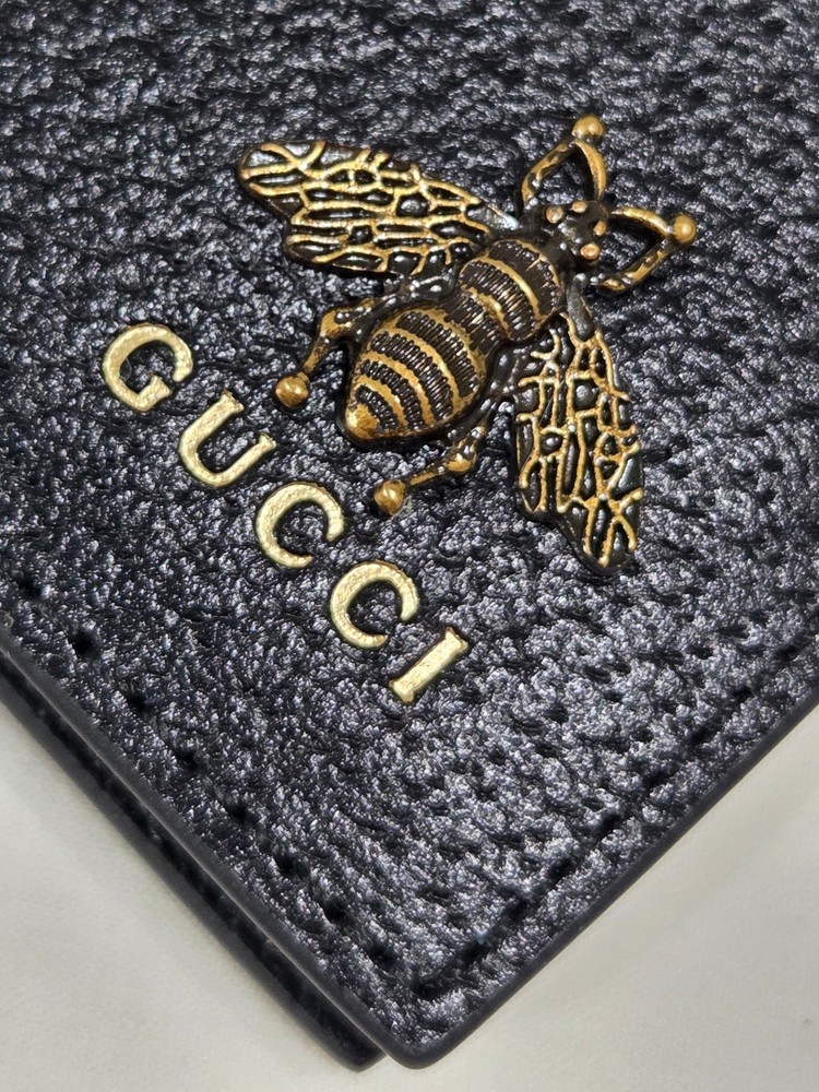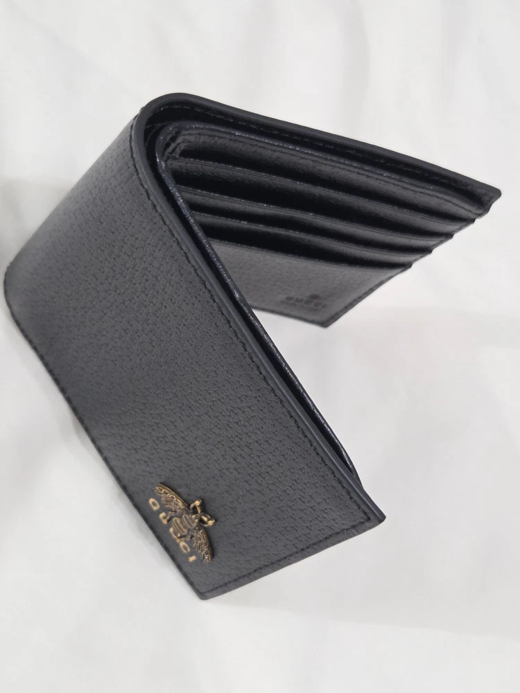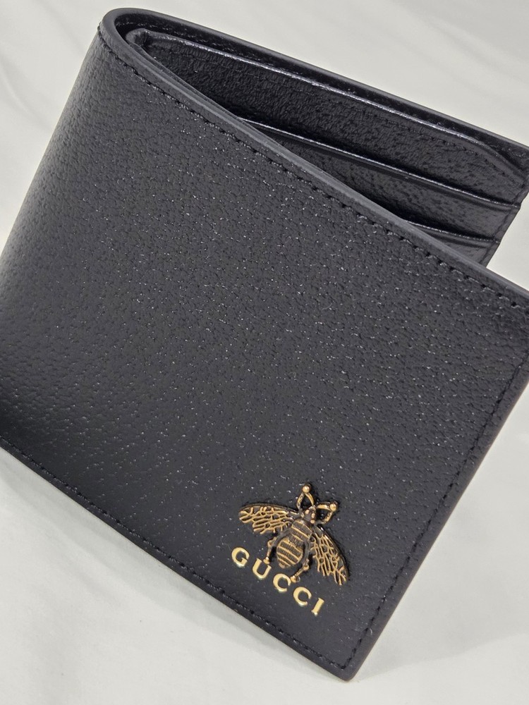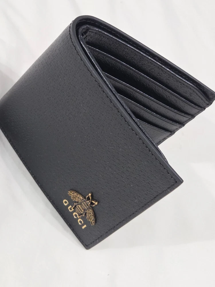 Get it Fast! Same Day Shipping! Authentic Mens Gucci Bifold Black Leather Animalier Bee Wallet New Mint Condition - Exact Item in Pictures Eight card slots and two bill compartments Open: 8.3"W x 3.5"H Closed: 4.3"W x 3.5"H Made in Italy Brass hardware Includes Box & Dust Bag! Ships Priority Mail Get it Fast!