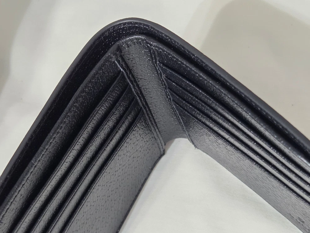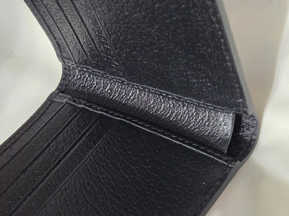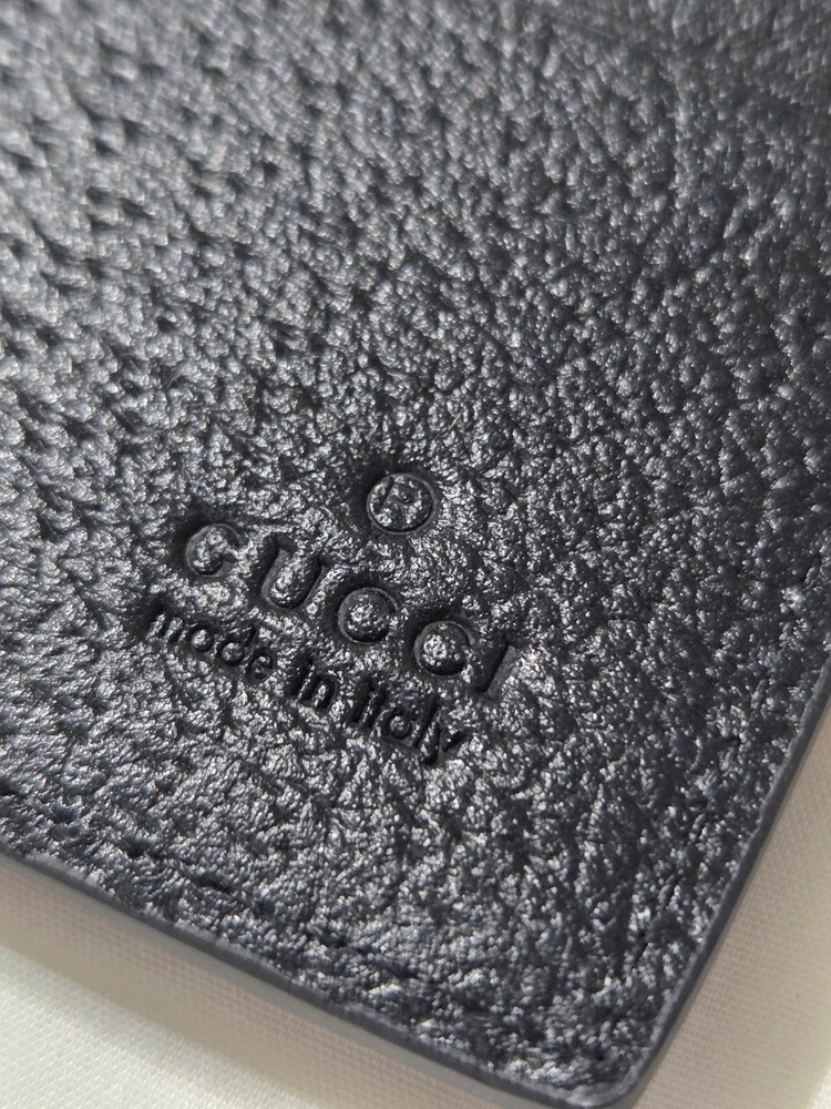 Get it Fast! Same Day Shipping! Authentic Mens Gucci Black Textured Leather Bifold Wallet New Mint Condition - Exact Item in Pictures Comes with Gift Box & Dust Bag Eight card slots and two bill compartments Open: 8.3"W x 3.5"H Closed: 4.3"W x 3.5"H Made in Italy Includes Box Fast Shipping!