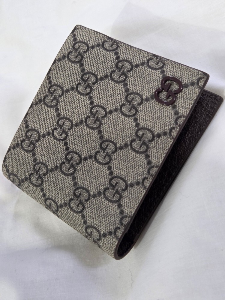 Get it Fast! Same Day Shipping! Last One! Authentic Mens Gucci Brown/Tan Monogram Canvas Bifold Wallet New Mint Condition - Exact Item in Pictures Eight card slots and two bill compartments Open: 8.3"W x 3.5"H Closed: 4.3"W x 3.5"H Made in Italy Brass hardware Includes Box & Dust Bag Ships Priority Mail Get it Fast!