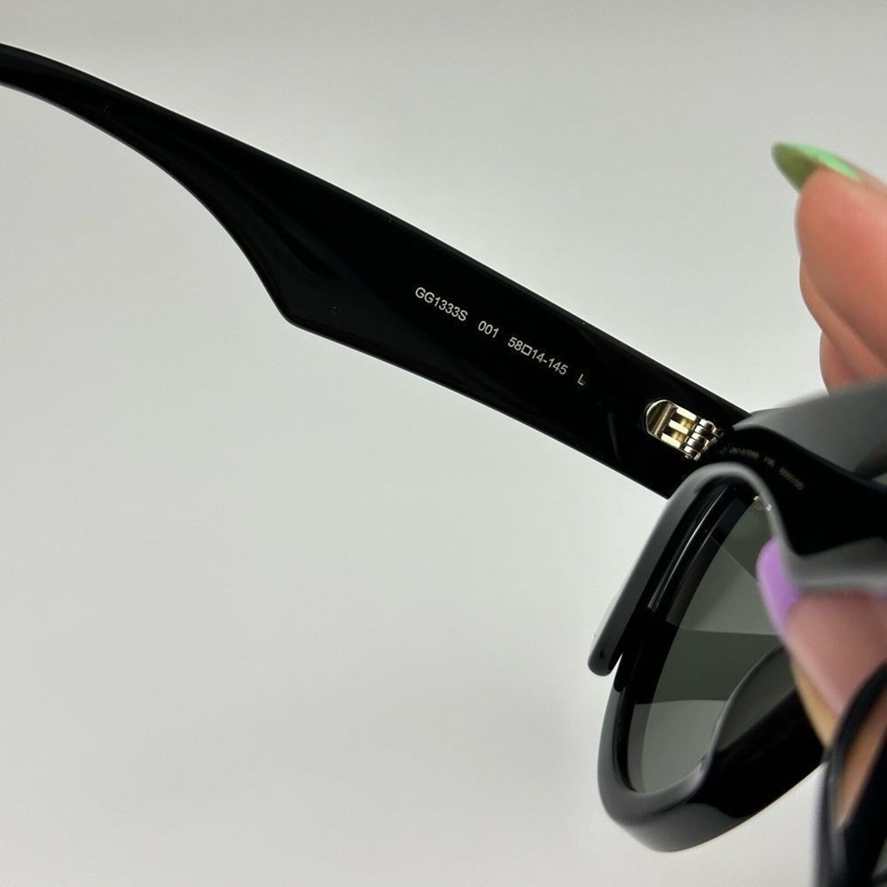 AUTHENTIC GUCCI SUNGLASSES DETAILS GUCCI GG1333S Frame Color: Black 001 Front Color: Black Temple Color: BLACK Lens Color: GREY Polarized Lens: No Lens Material: BIO NYLON Prescription Capable: No Gender: Women's Lens Width: 58 Bridge Width: 14 Arm Length: 145 Made in Italy Comes with original packaging and all accessories