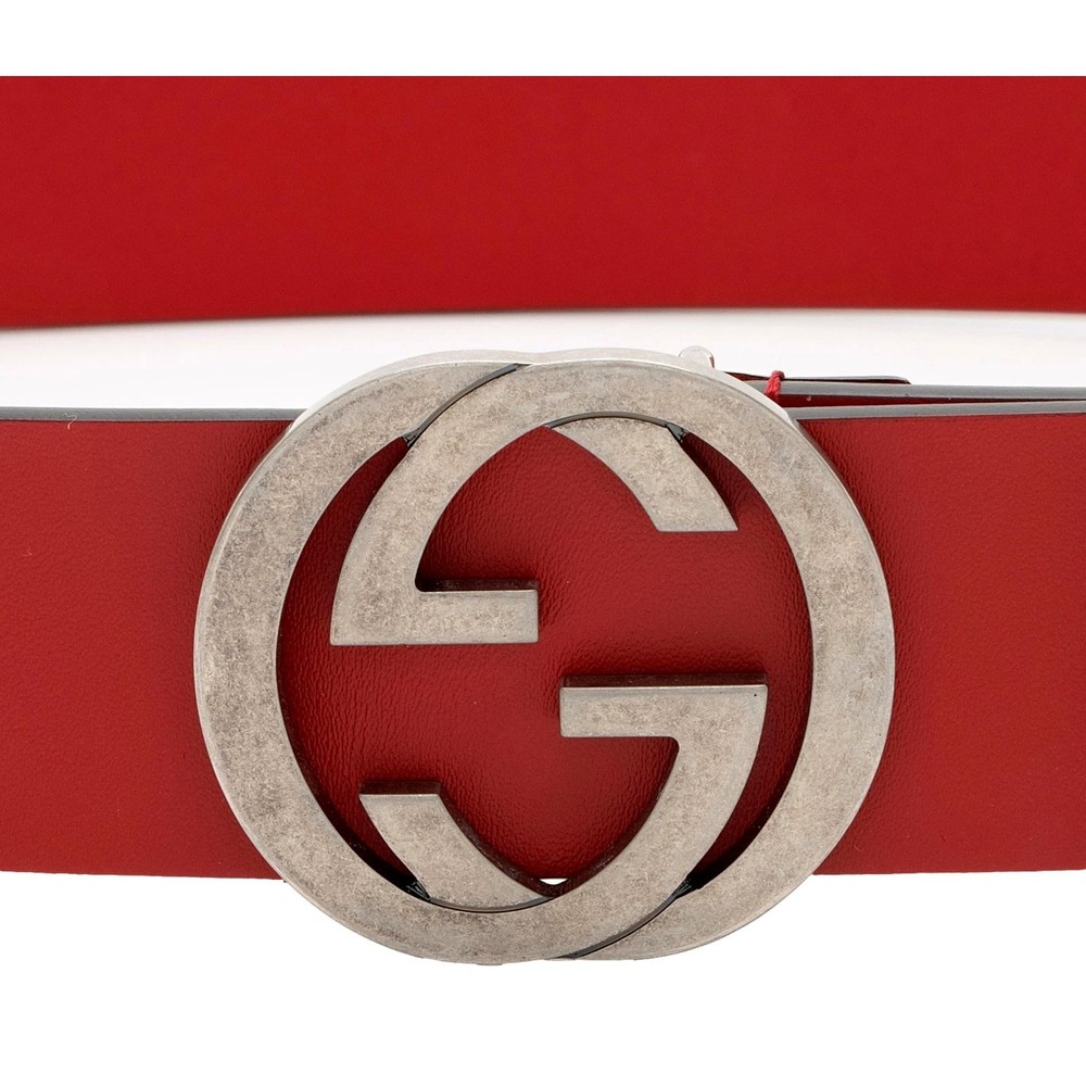 Authentic New Gucci Leather Belt Tinted interlock GG buckle with a matte finish (see photos for details) Color: Red Belt Size: 90 (36) Material: Leather New with tags and dustbag