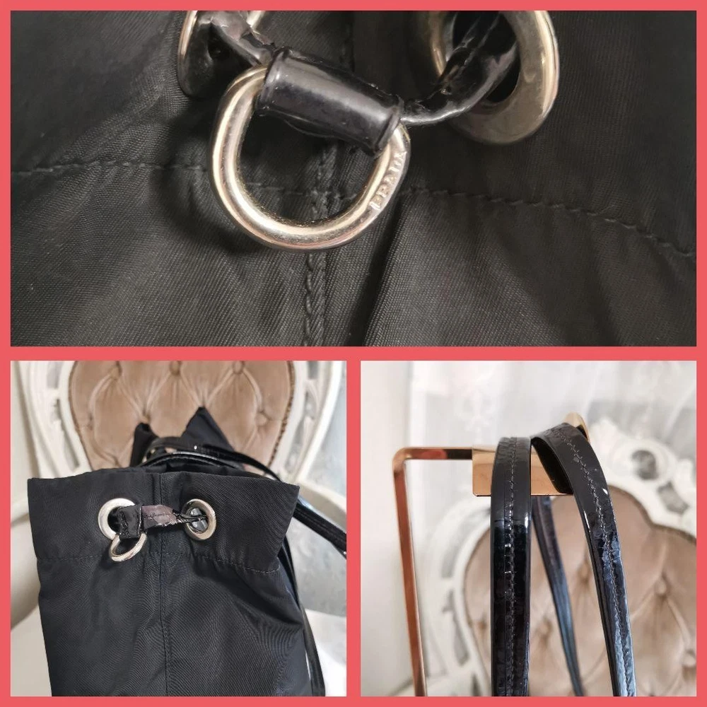 Prada black nylon cadena handbag with triangle logo plate from Japan