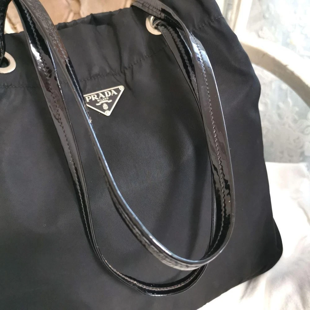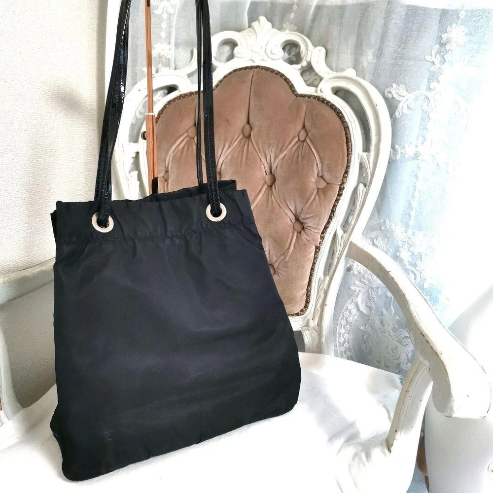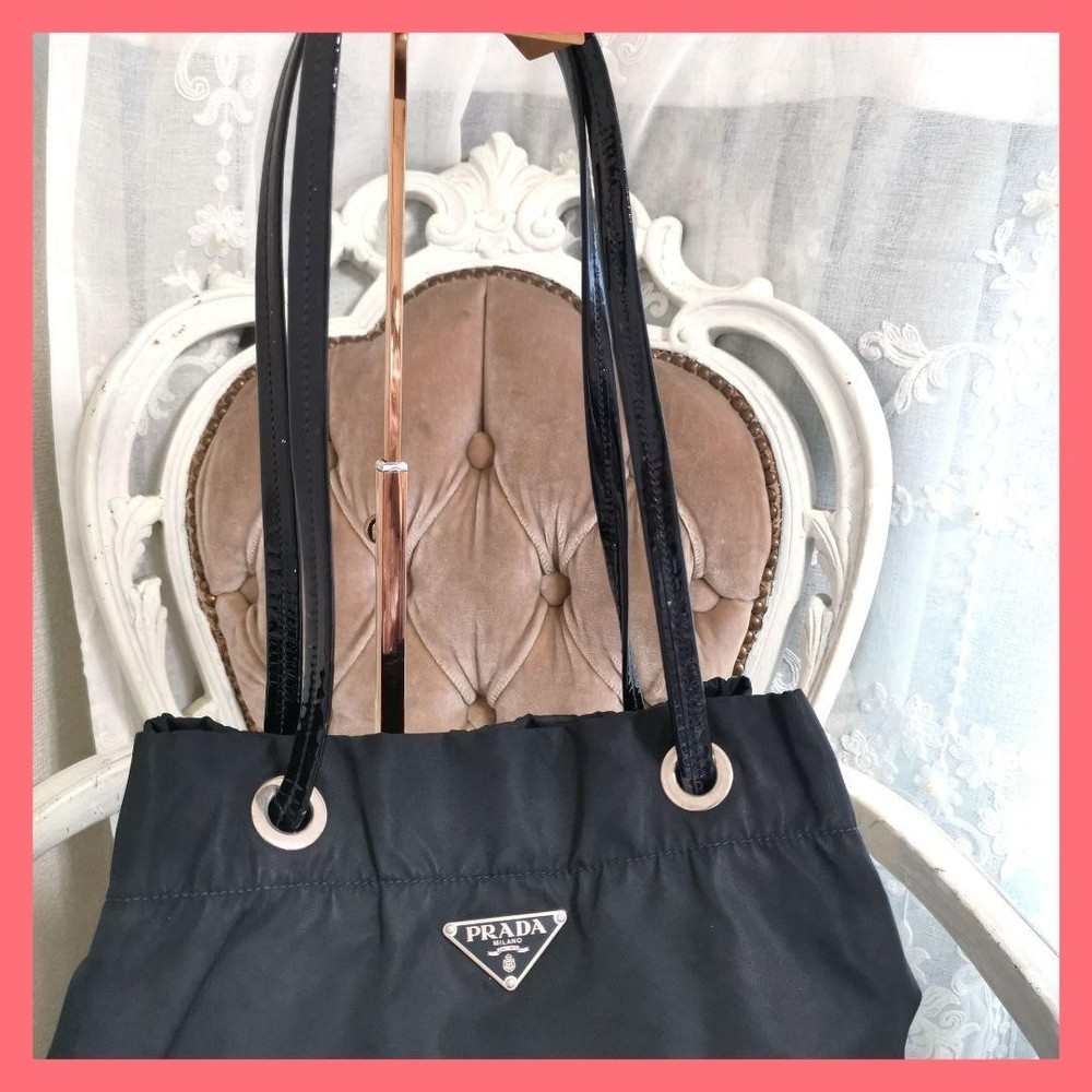 $ 143.44Rare PRADA BR3169 Large Triangle Logo Black Tote Bag From Japan