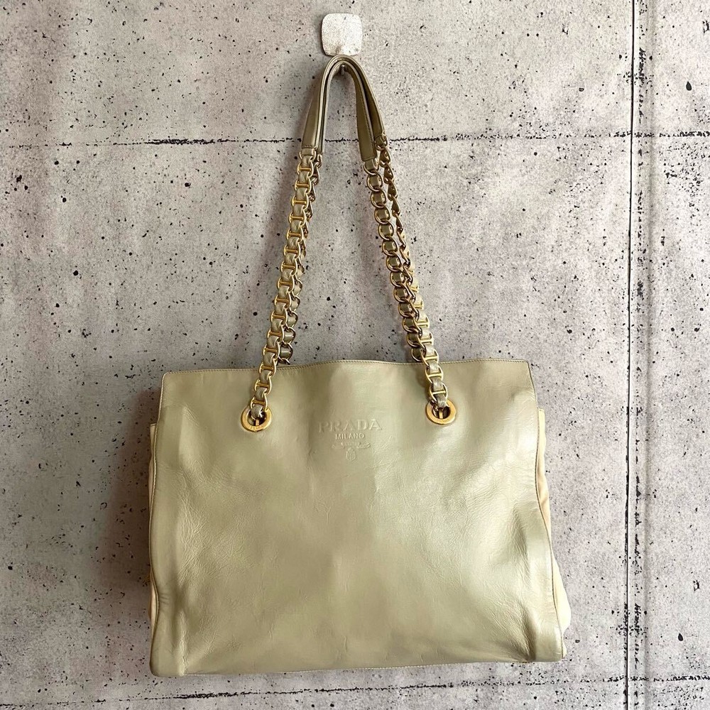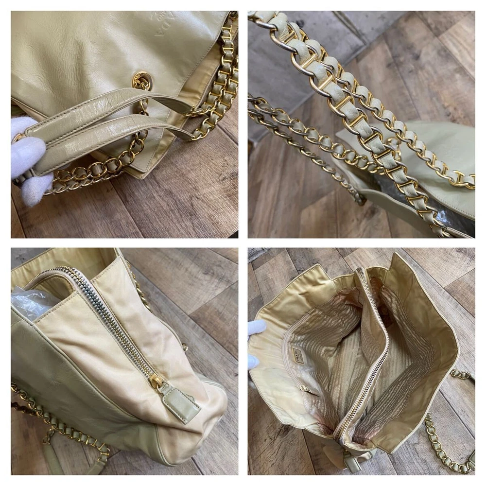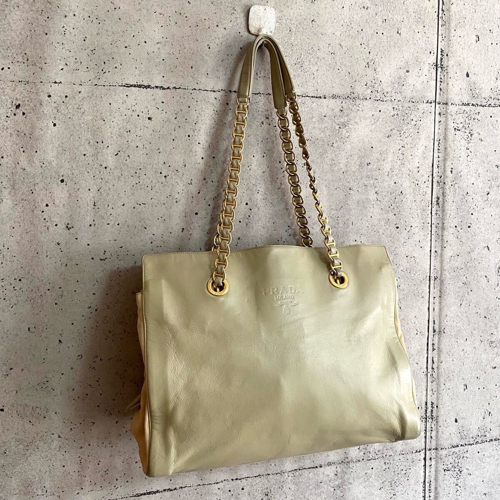 Absolutely love this Prada tote! The khaki beige color is so chic and versatile, perfect for any occasion. The chain detail adds a luxurious touch, and the bag feels sturdy yet lightweight. It’s definitely a rare find, and the quality is outstanding—100% authentic as described. The seller was super responsive and even offered a discount on shipping for multiple items. Highly recommend grabbing this before it’s gone!